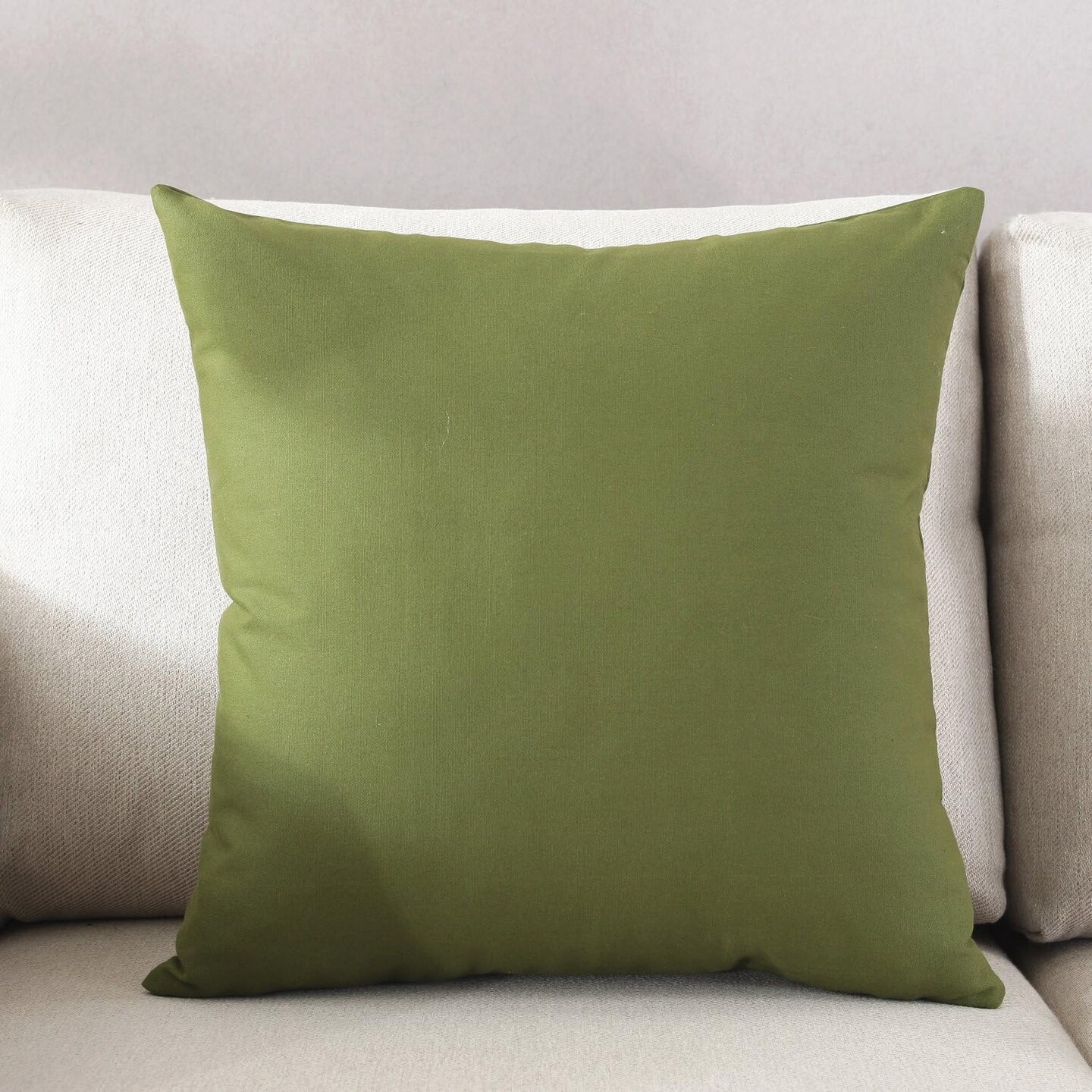 Decorative 100% Cotton Canvas Square Solid Toss Pillowcase Cushion Cover Pillow Cover with Hidden Zipper Closure Only Cover No Insert - Olive Green 18"x18"(45x45cm)