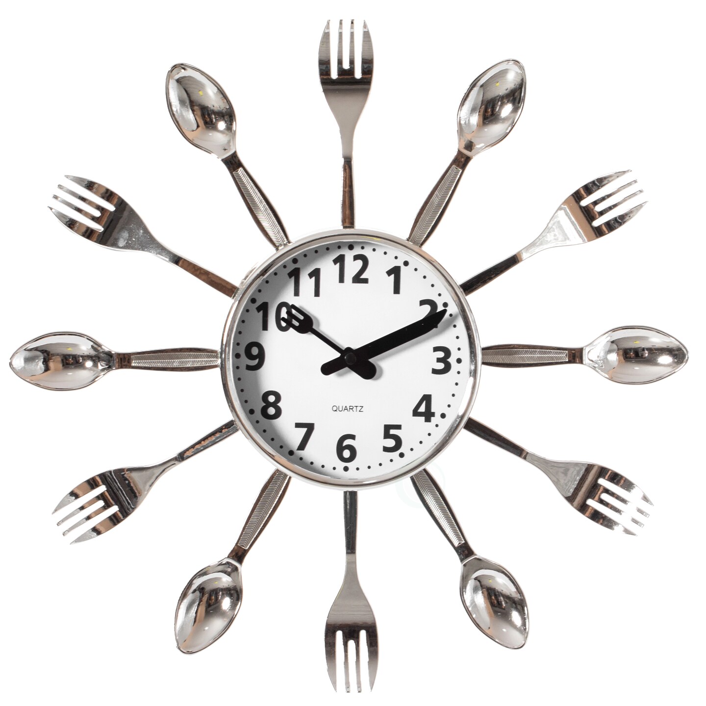 Decorative 3D Cutlery Utensil Spoon and Fork Wall Clock for Kitchen, Playroom or Bedroom