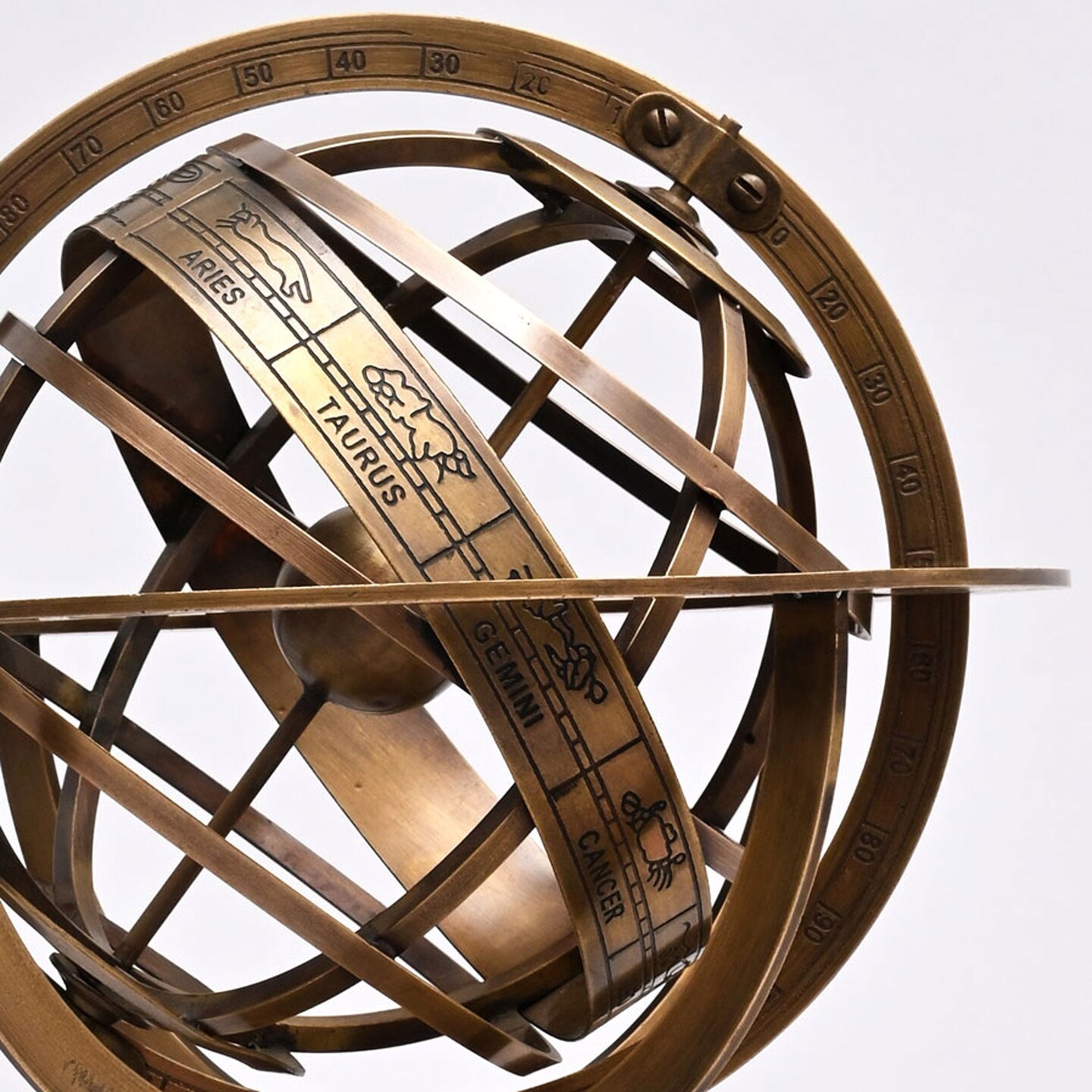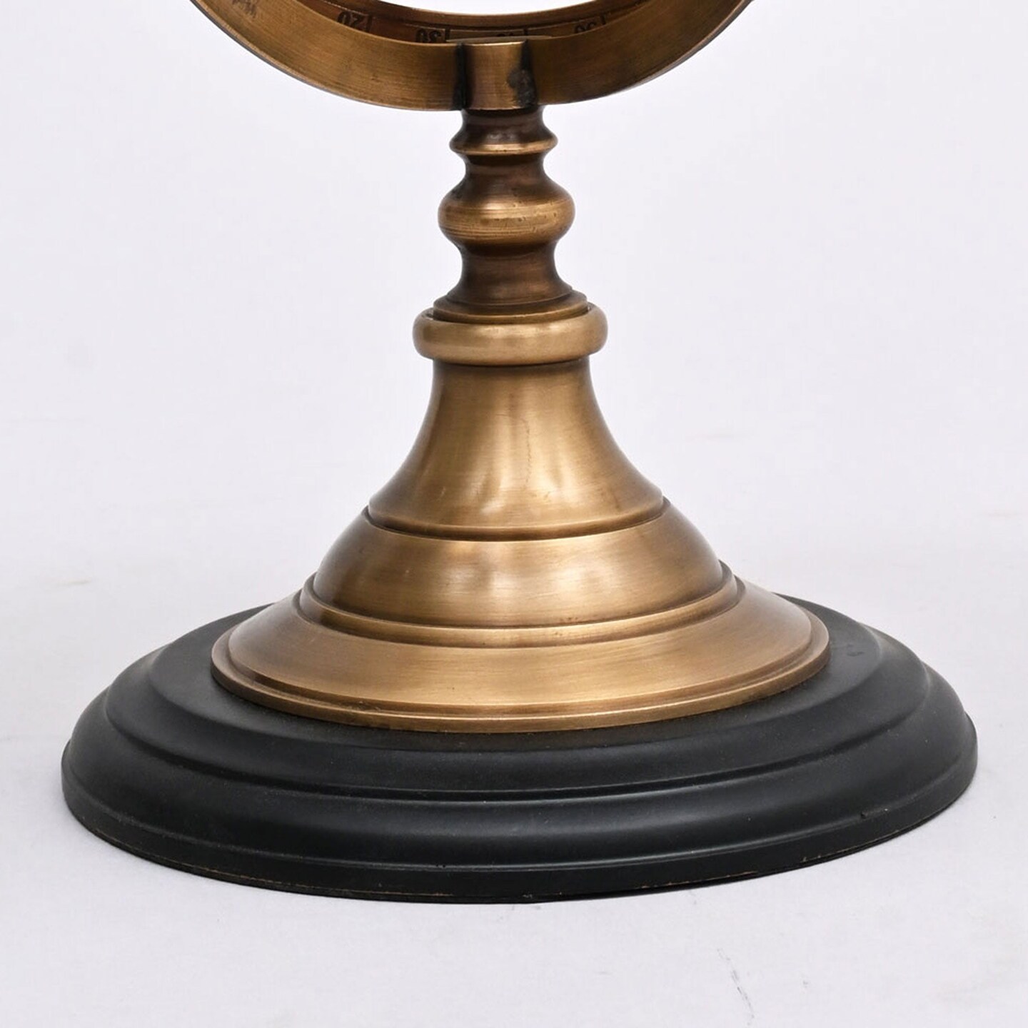 Decorative 7" Brass Armillary Sphere with Wood Base for Desk or Shelf Display
