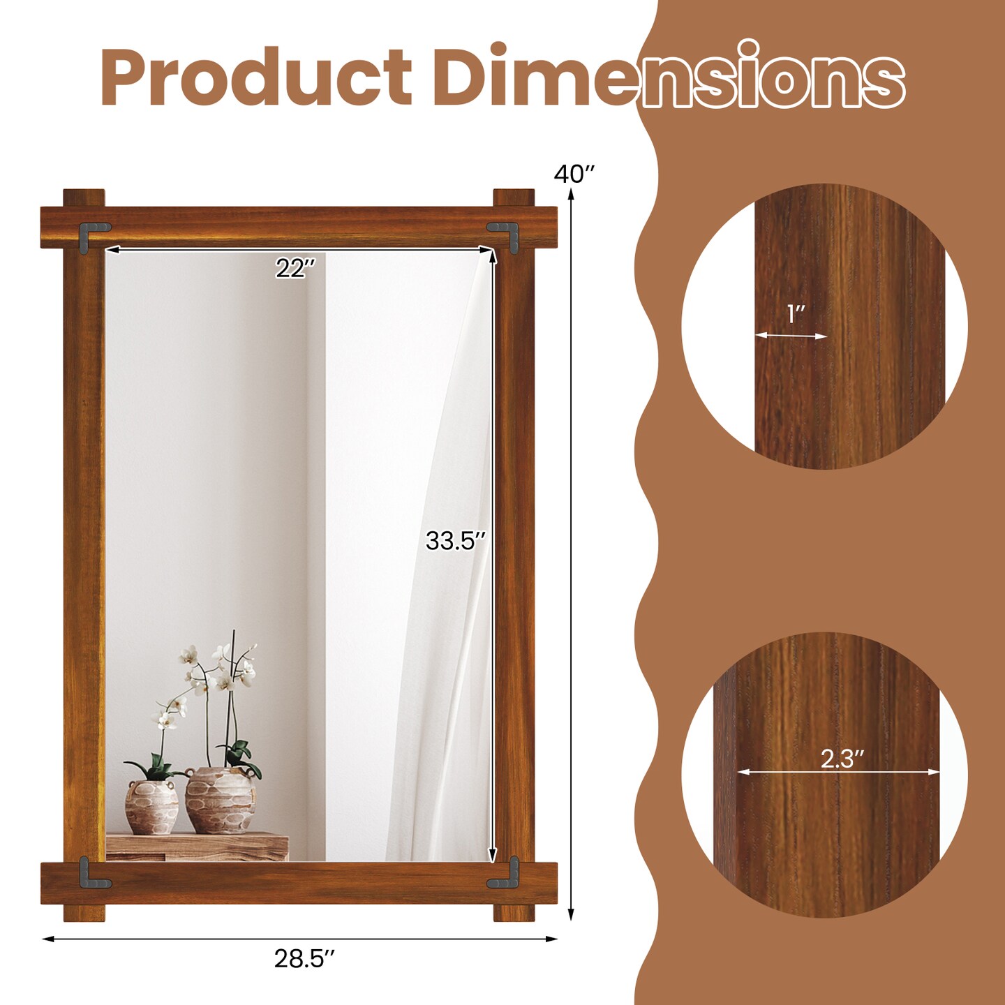 Decorative Acacia Wood Mirror with Rivet Design for Entryway and Living Room