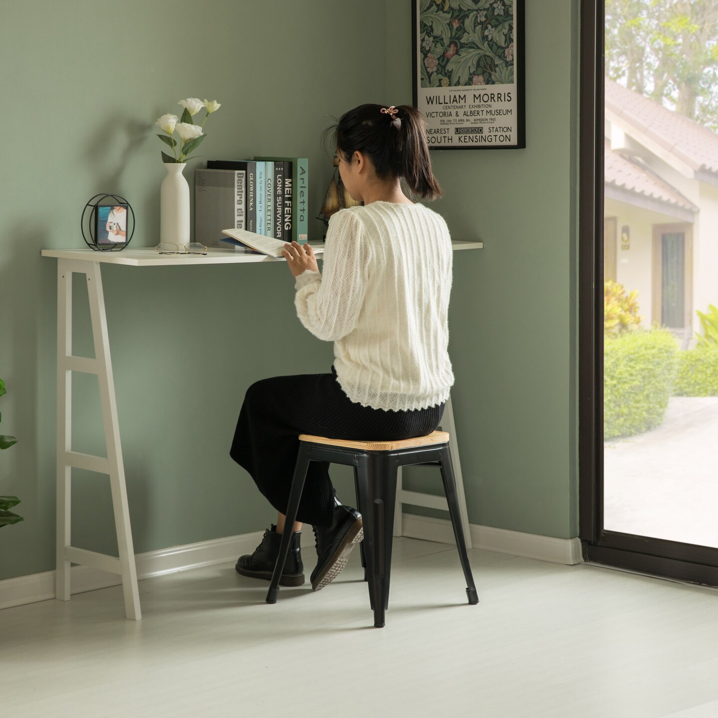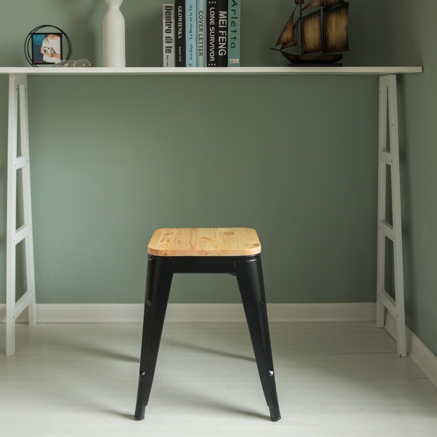 Decorative Accent Bar Stool for Indoor and Outdoor, Wooden Brown and Metal Black