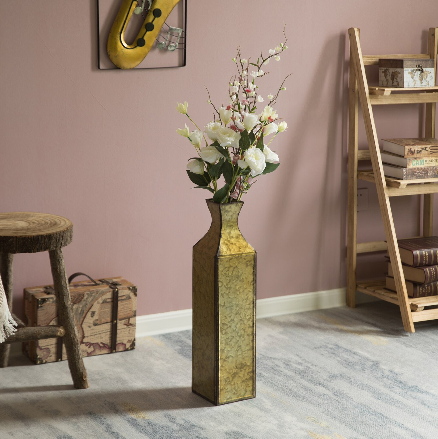 Decorative Antique Style Metal Bottle Shape Gold Floor Vase for Entryway, Living Room, Dining Room, Home Decor, Centerpiece, Ornamental, Vintage-Inspired, Elegant Tall Statement Piece, Metallic Finish