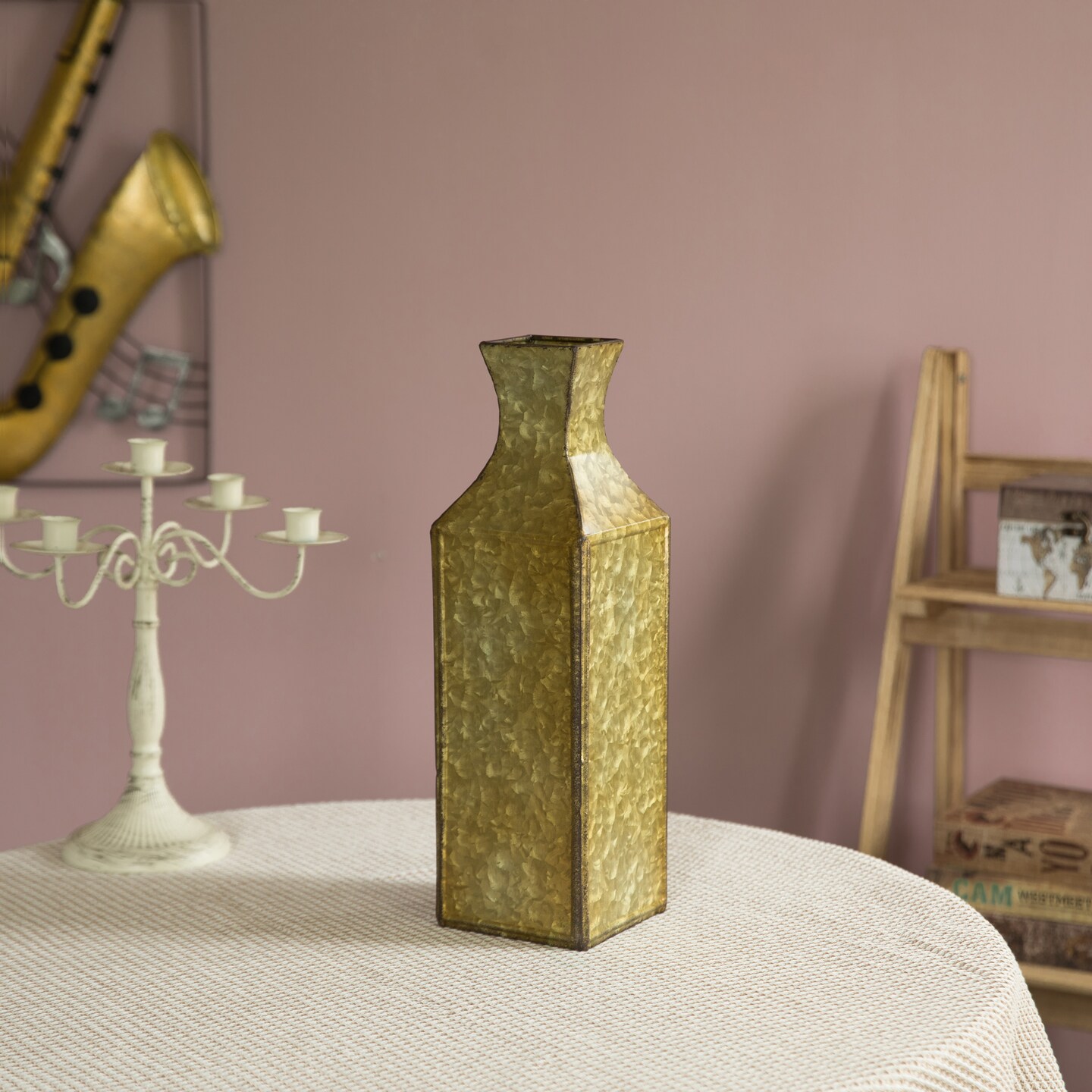 Decorative Antique Style Metal Bottle Shape Gold Floor Vase for Entryway, Living Room, Dining Room, Home Decor, Centerpiece, Ornamental, Vintage-Inspired, Elegant Tall Statement Piece, Metallic Finish