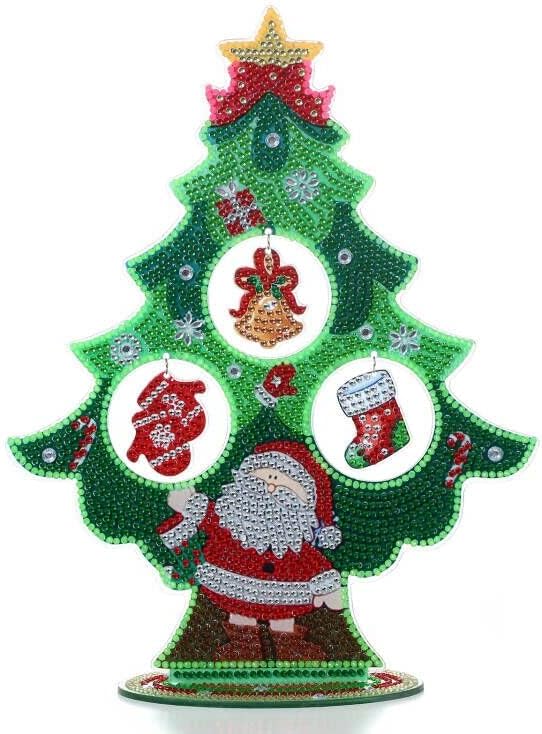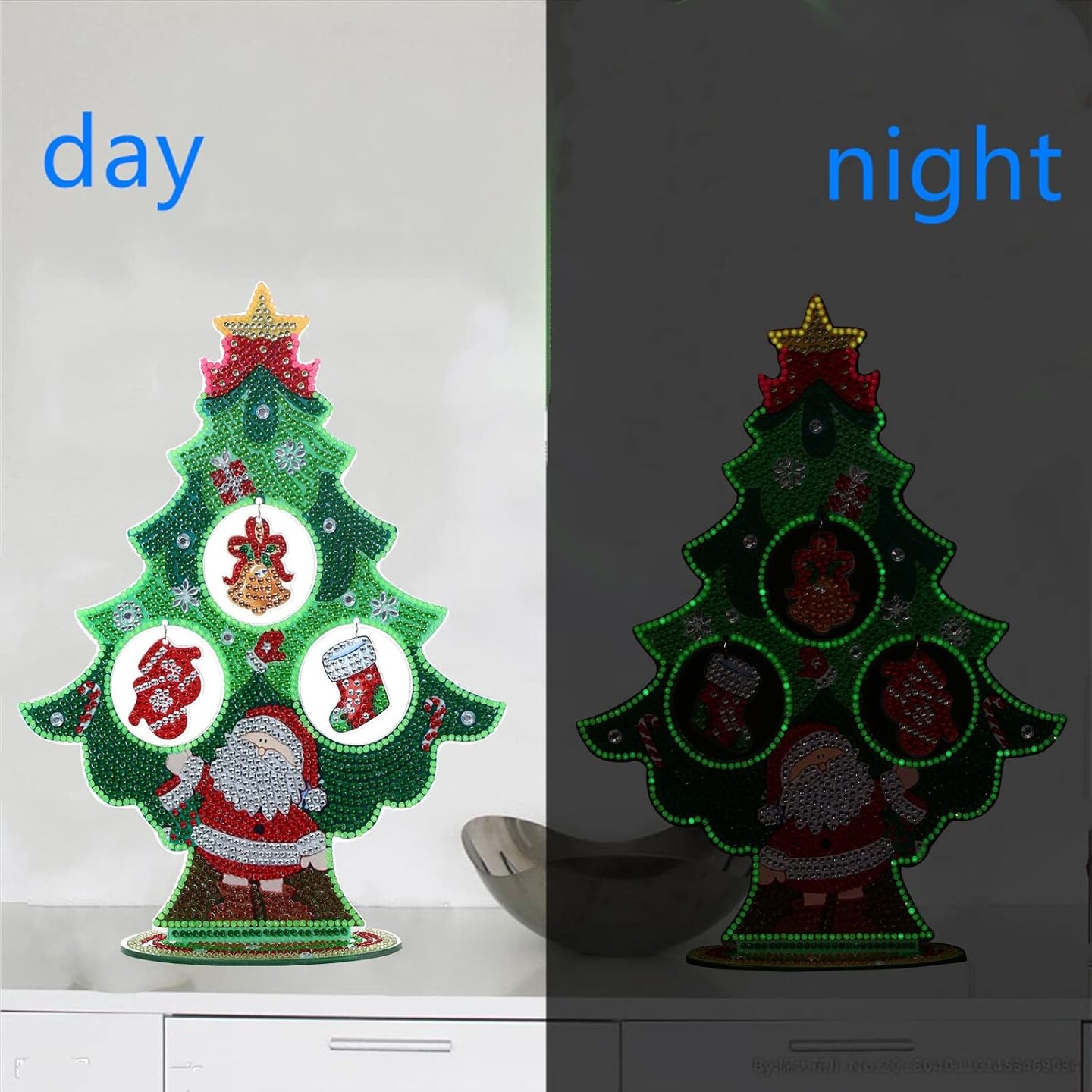 Decorative Christmas Tree Tabletop Diamond Painting Kit – 11-Inch Luminous 5D Rhinestone Art, DIY Xmas Desktop Decoration & Ornament