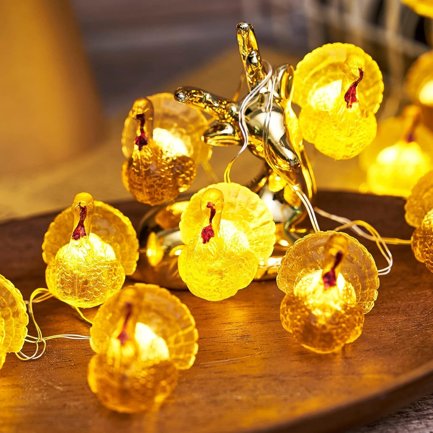 Decorative Fairy Turkey String Lights Novelty Fall Garland Lights Rope 8ft 20LEDs Battery Operated with Remote for Indoor Decoration Easter Autumn Christmas Home Bedroom Party Fall Tree Decor