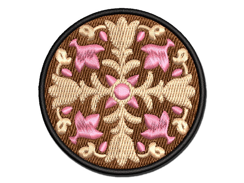 Decorative Floral Arabesque Pattern with Flowers and Leaves Multi-Color Embroidered Iron-On or Hook & Loop Patch Applique