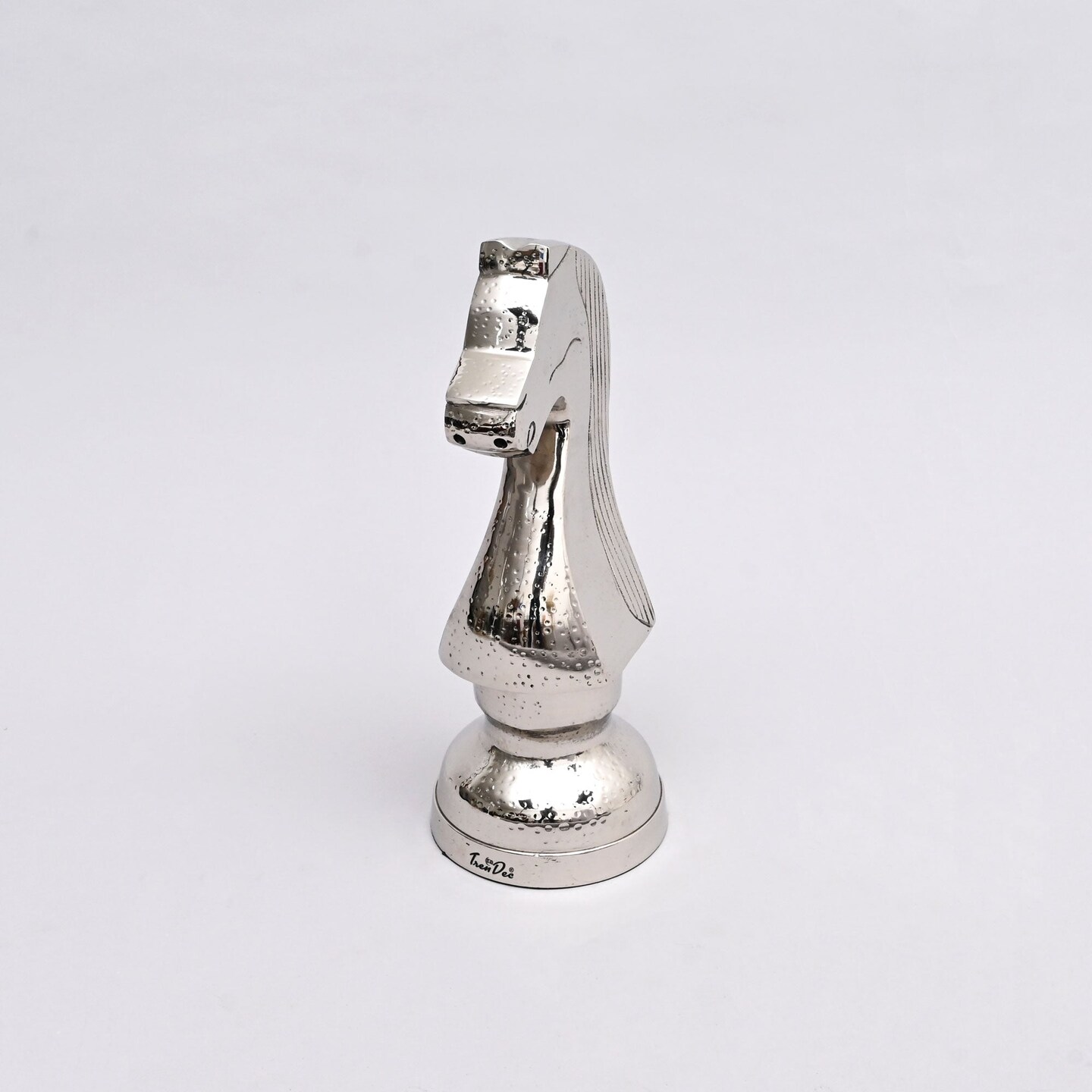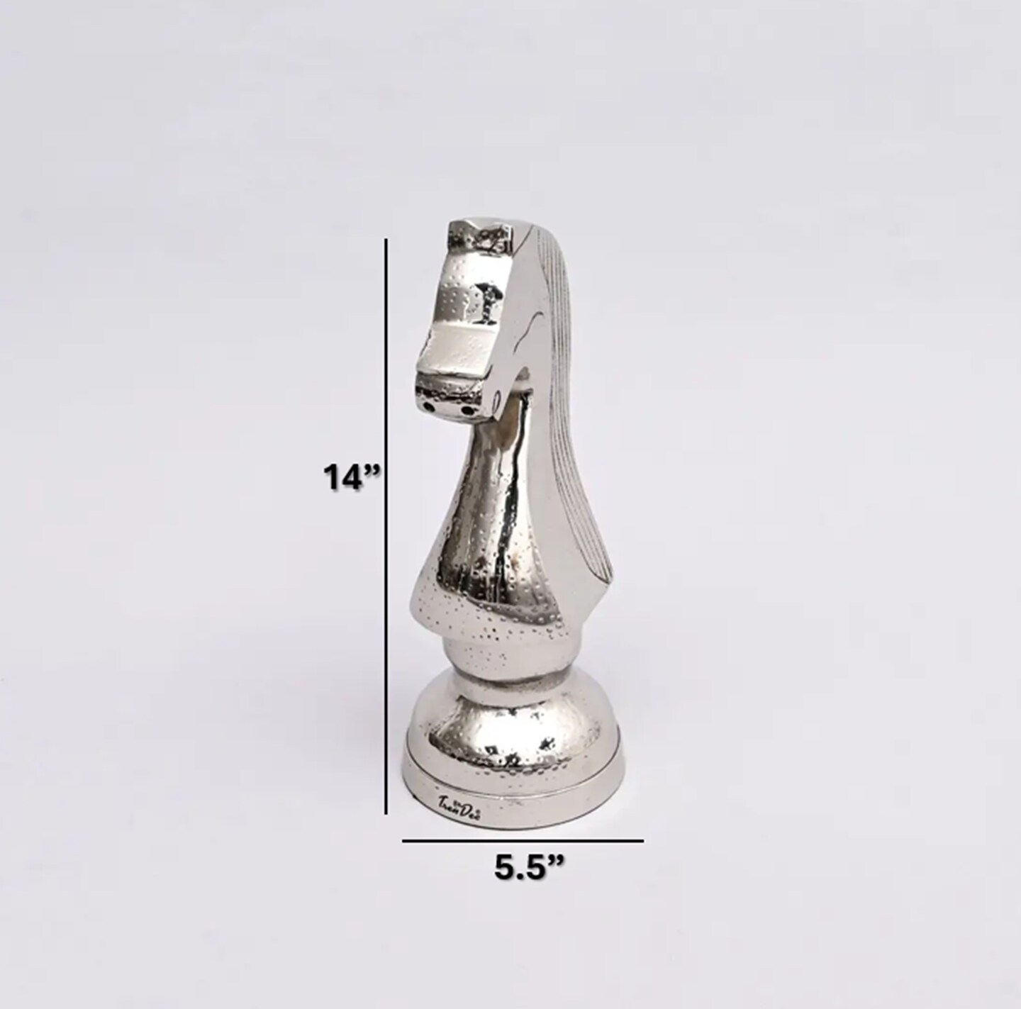 Decorative Hammered Nickel Finish Chess Horse Sculpture – Elegant Table Accent (5.5x5.5x14")