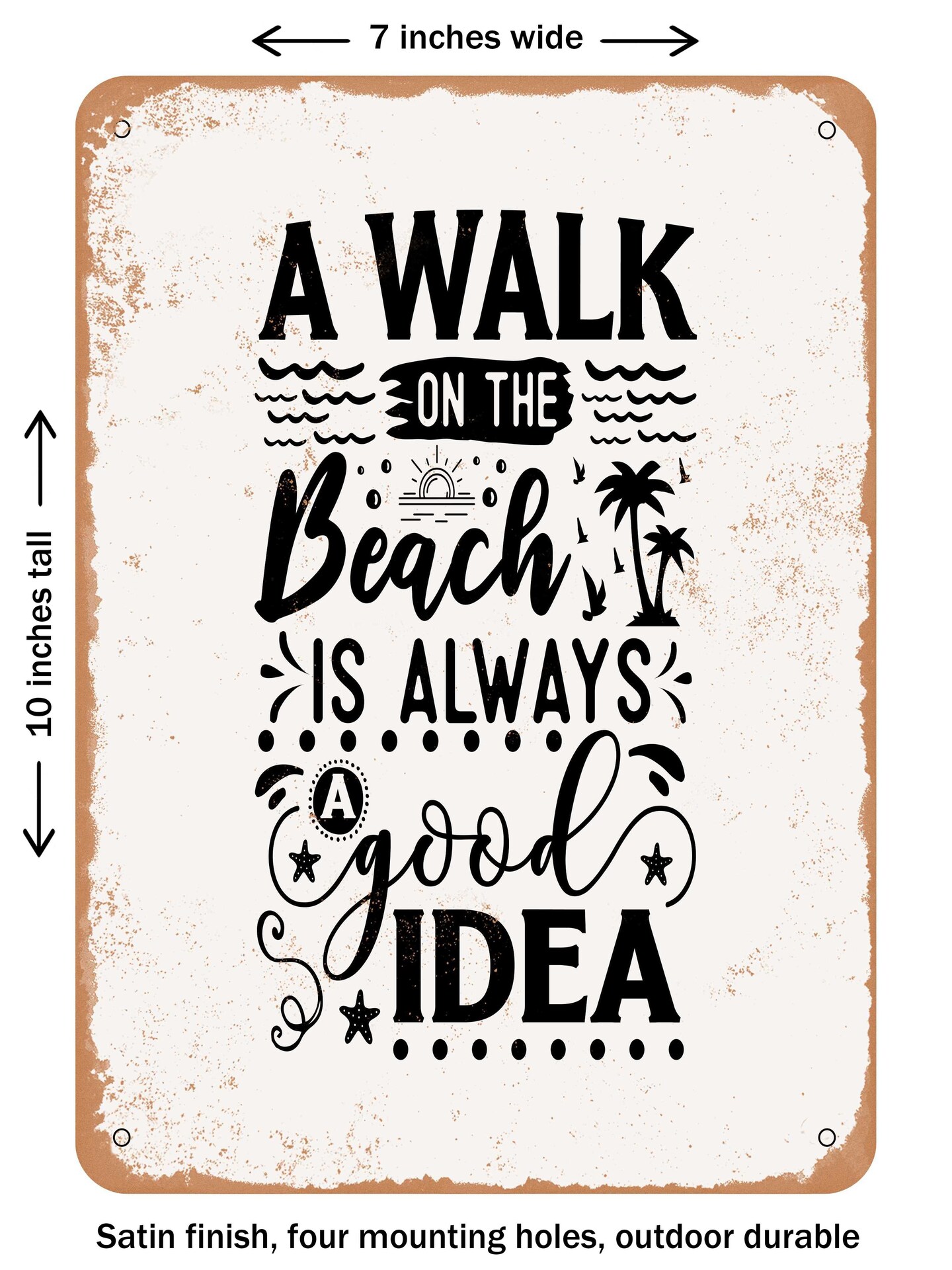 DECORATIVE METAL SIGN - a Walk On the Beach is Always a Good Idea - Vintage Rusty Look