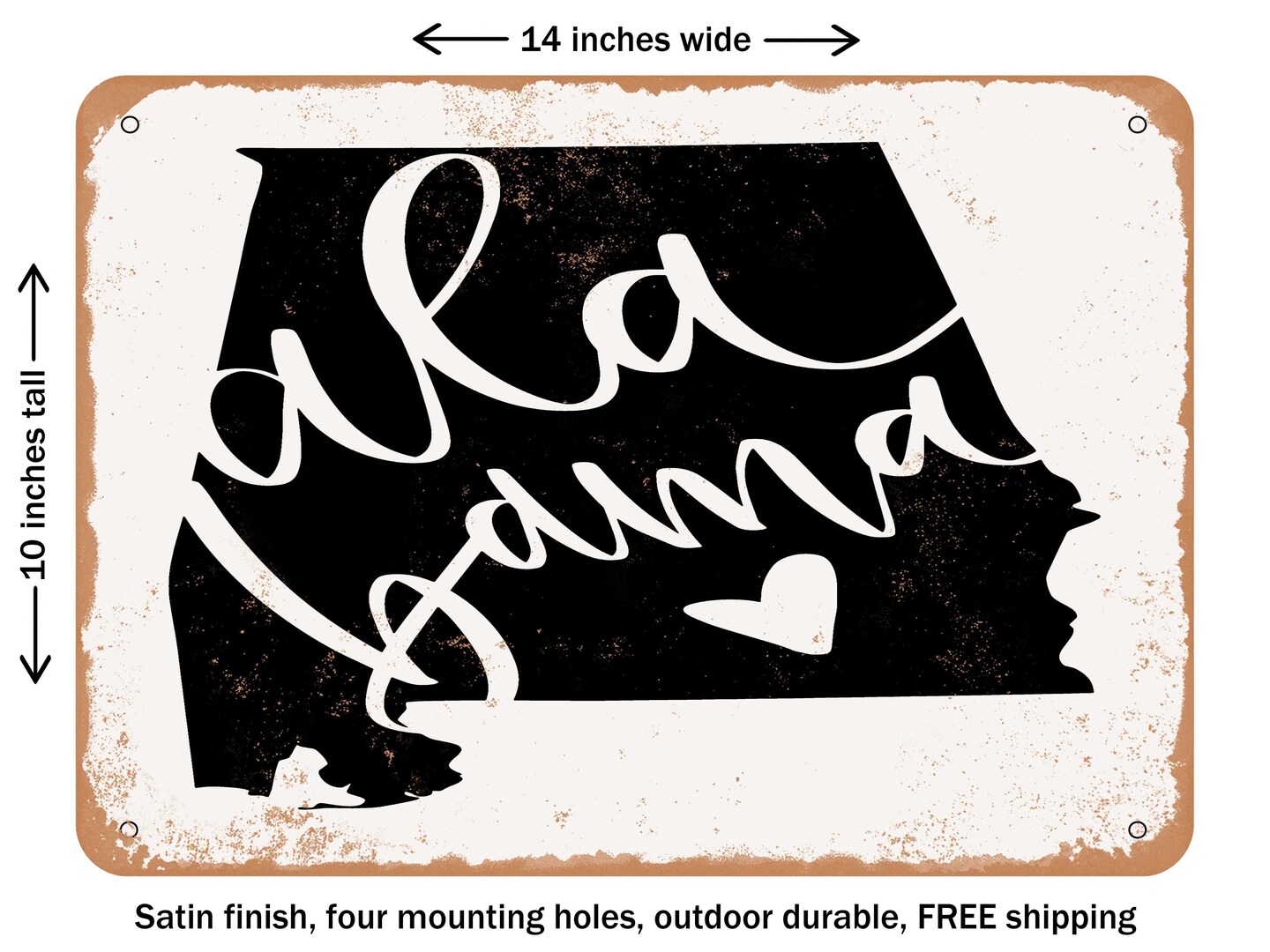 DECORATIVE METAL SIGN - Alabama Heart - Vintage Rusty Look