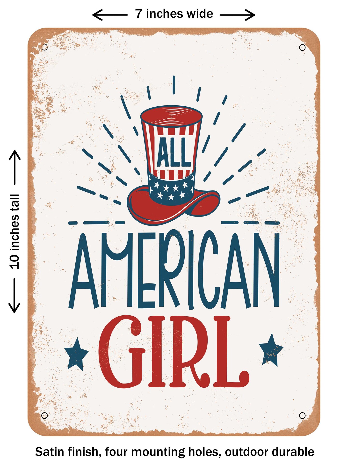 DECORATIVE METAL SIGN - All American Girl - Vintage Rusty Look