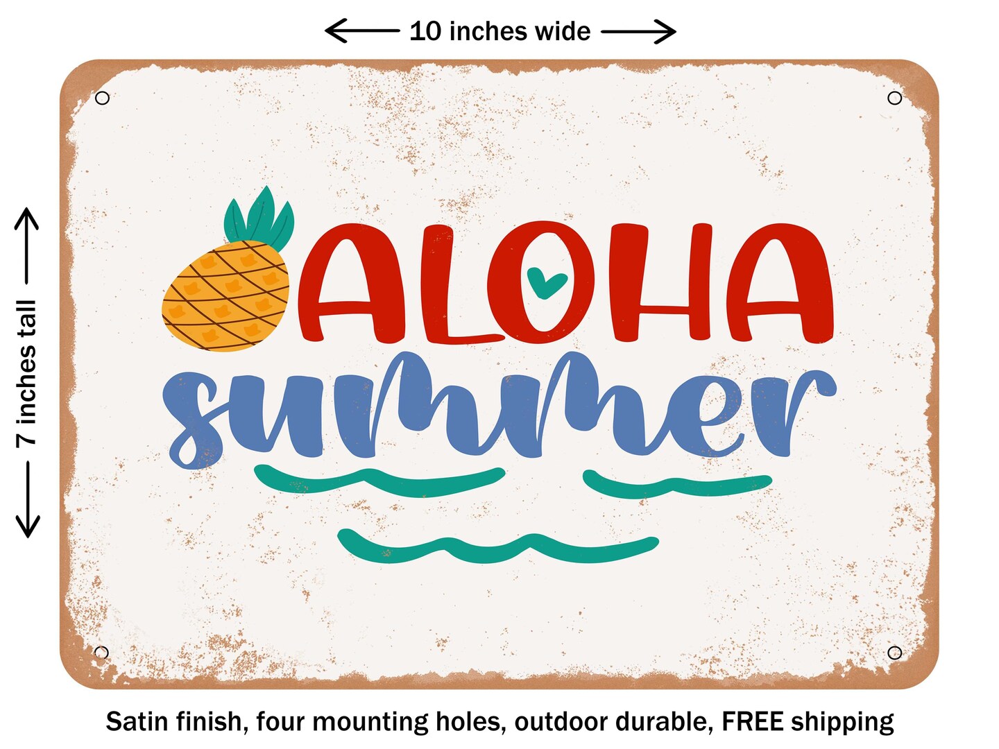 DECORATIVE METAL SIGN - Aloha Summer - 4 - Vintage Rusty Look