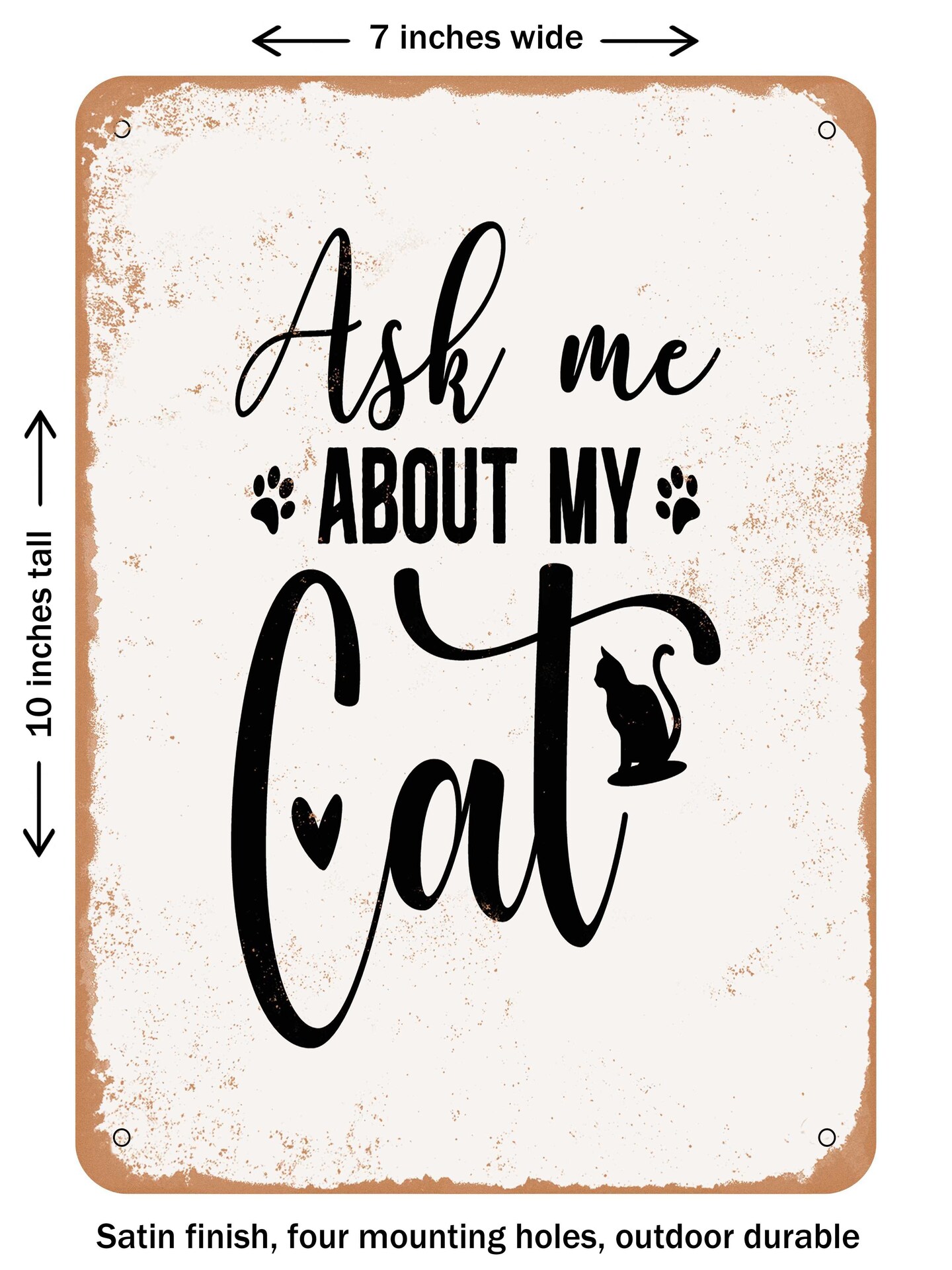 DECORATIVE METAL SIGN - Ask Me About My Cat - Vintage Rusty Look