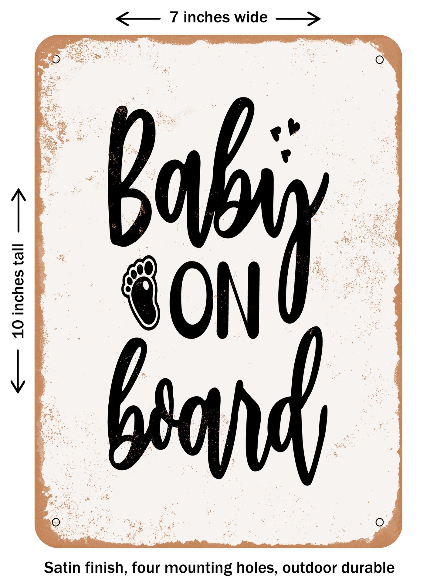 DECORATIVE METAL SIGN - Baby On Board - Vintage Rusty Look