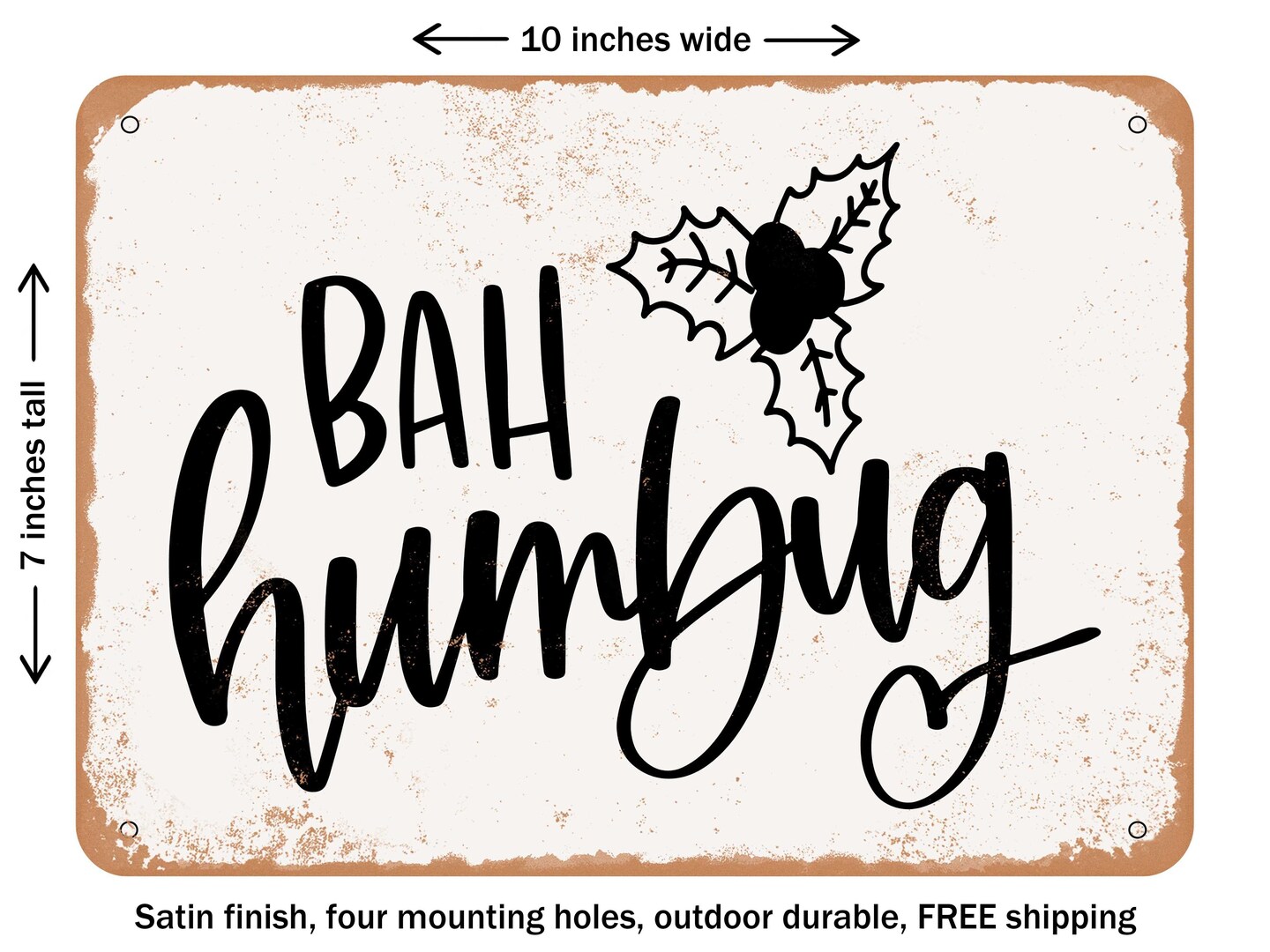 DECORATIVE METAL SIGN - Bah Humbug - Vintage Rusty Look