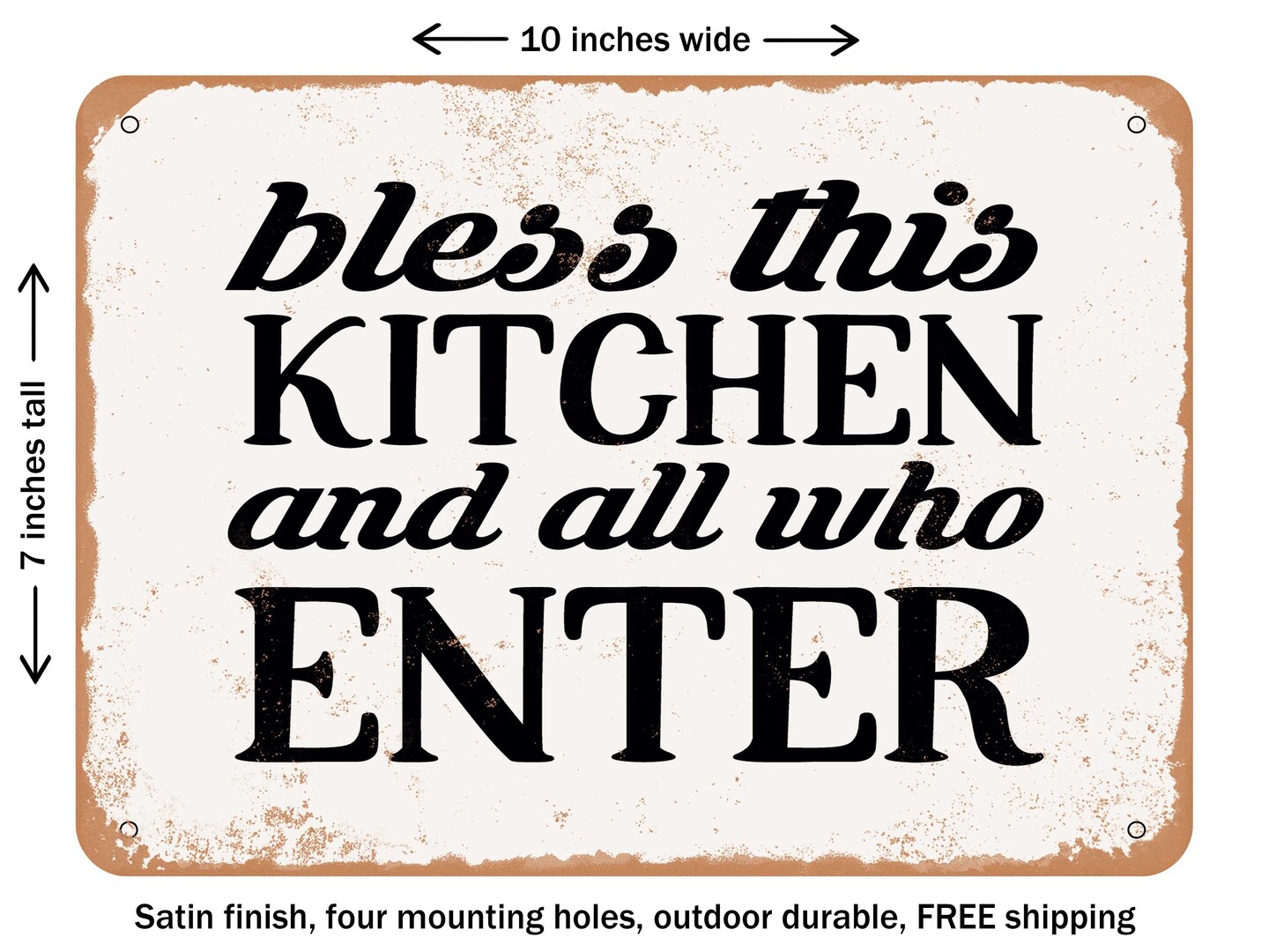 DECORATIVE METAL SIGN - Bless This Kitchen and All Who Enter - Vintage Rusty Look