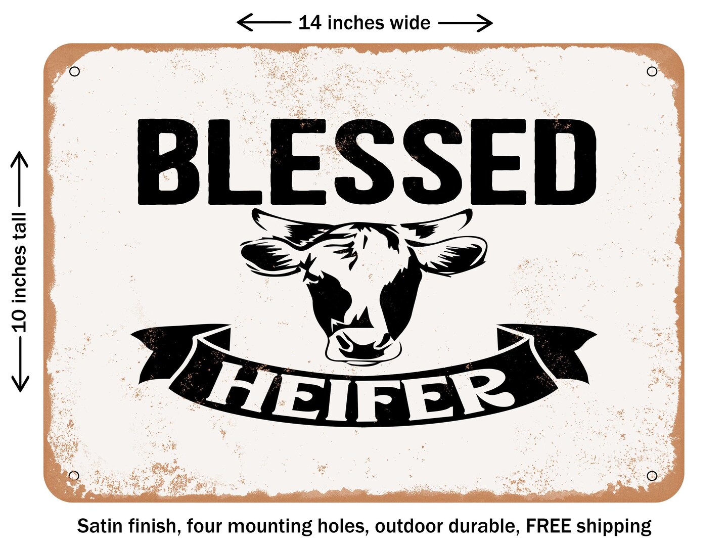DECORATIVE METAL SIGN - Blessed Heifer - Vintage Rusty Look