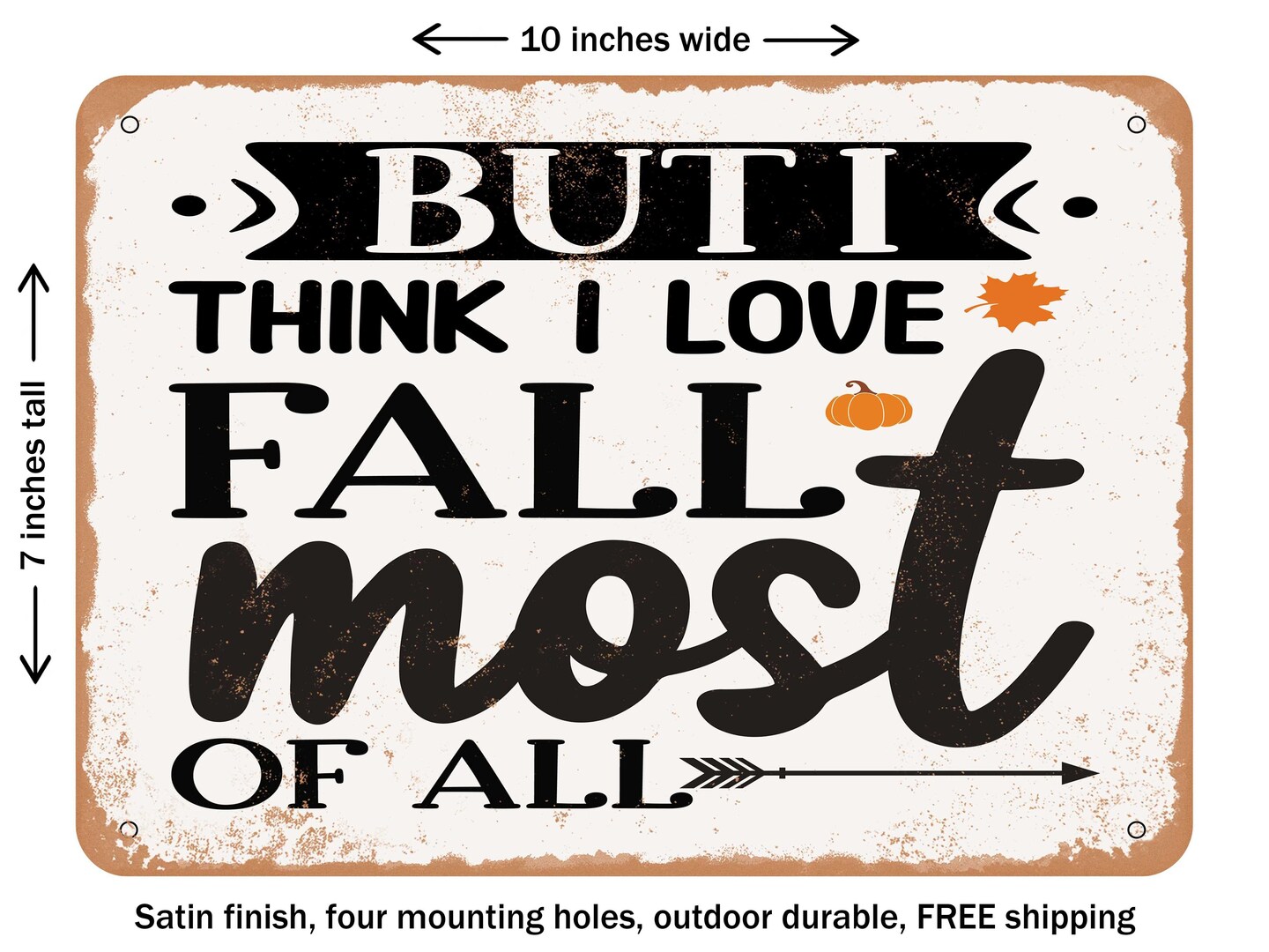 DECORATIVE METAL SIGN - But I Think I Love Fall Most of All - Vintage Rusty Look