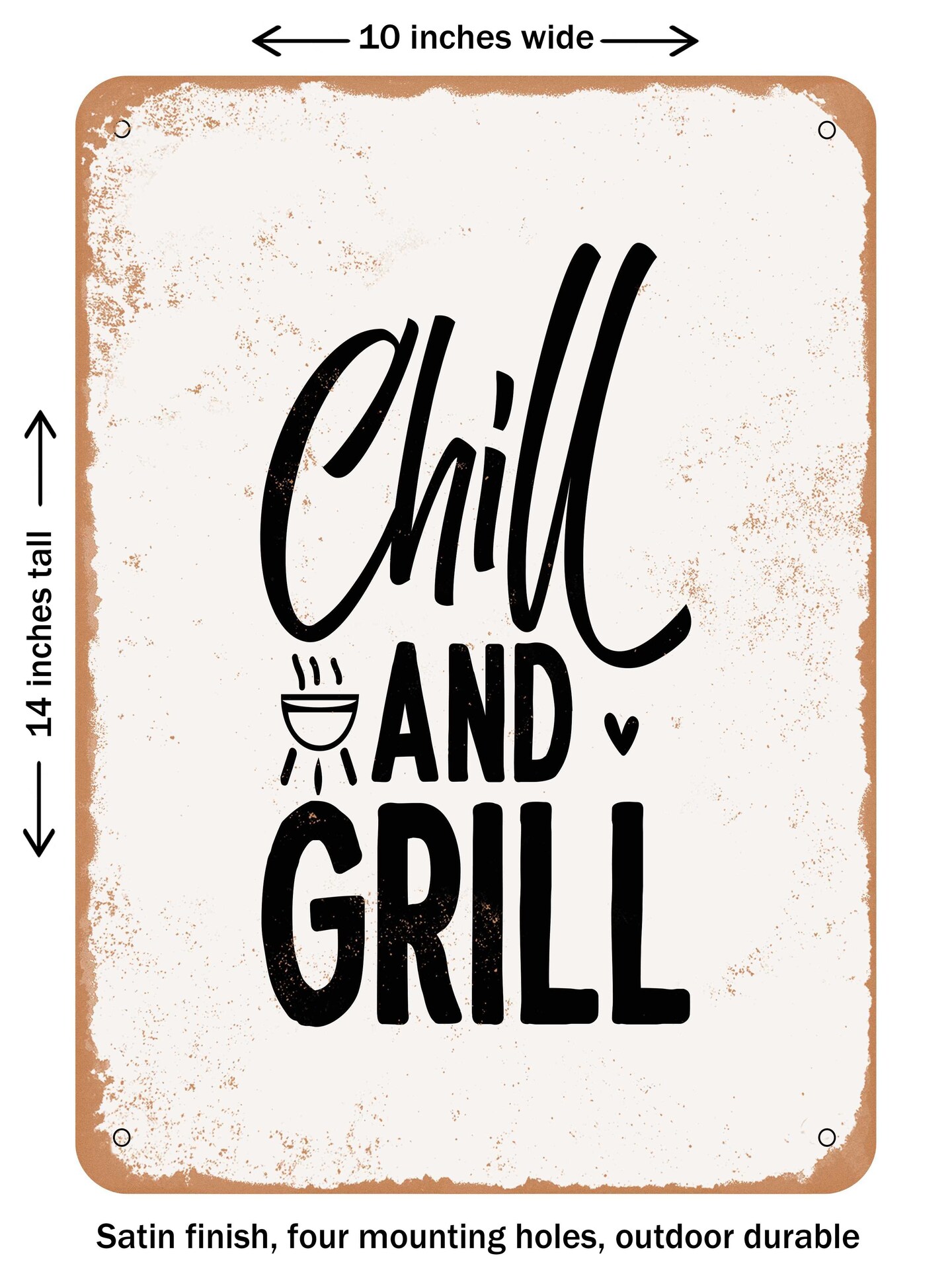 DECORATIVE METAL SIGN - Chill and Grill - Vintage Rusty Look