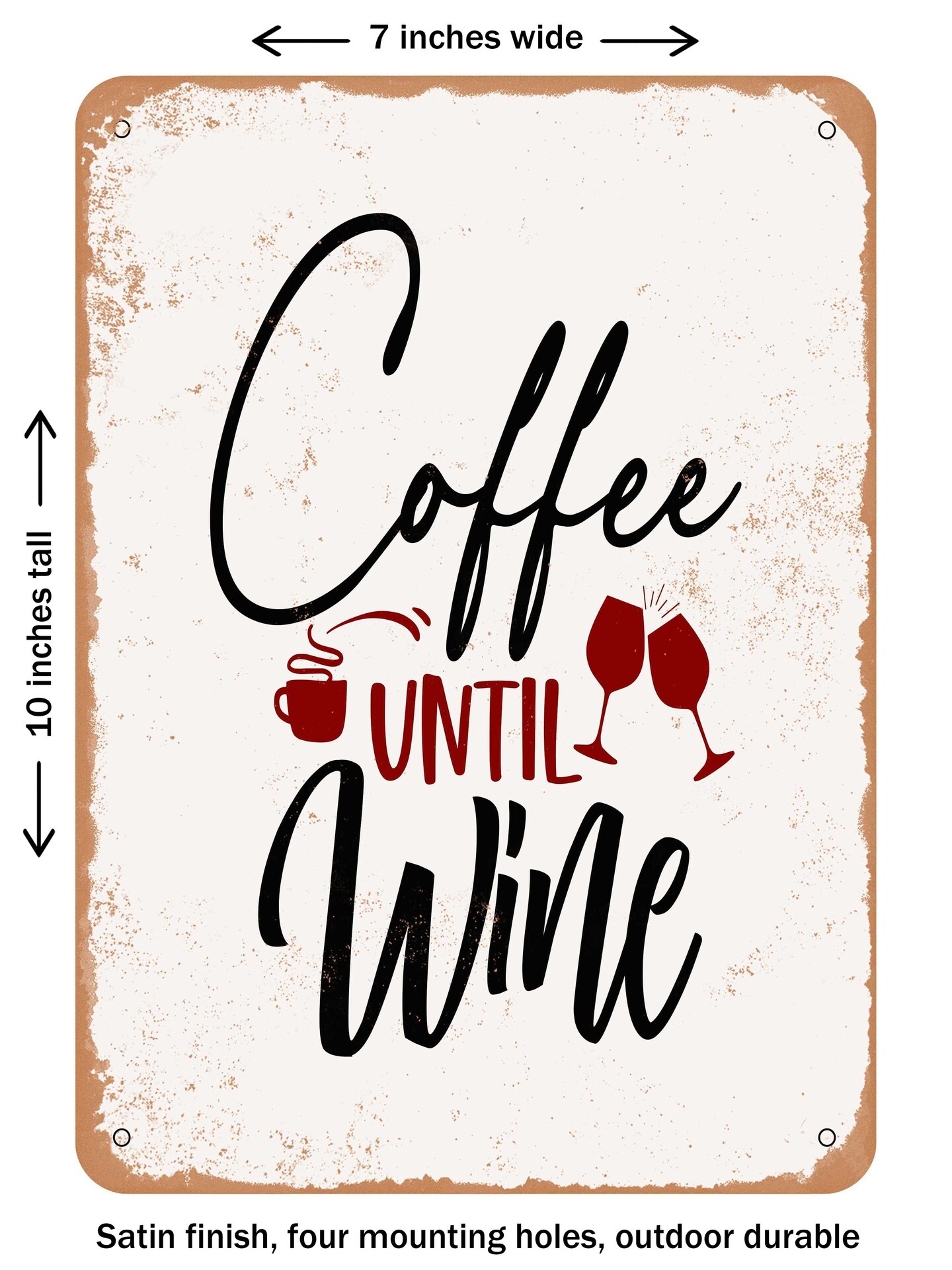DECORATIVE METAL SIGN - Coffee Until Wine - Vintage Rusty Look