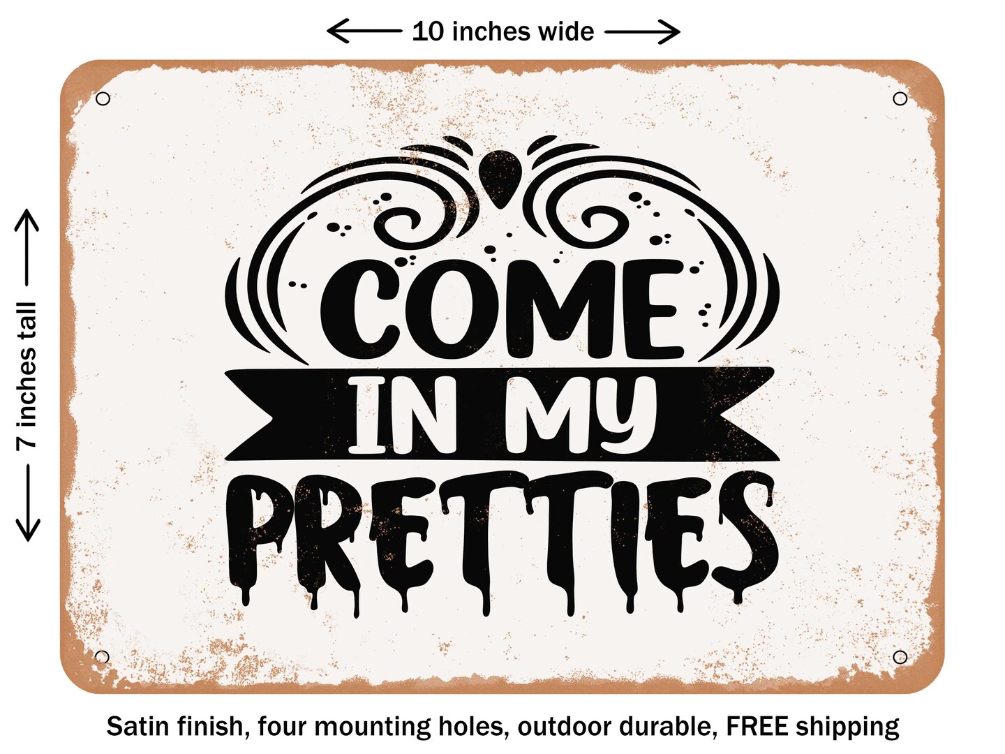 DECORATIVE METAL SIGN - Come In My Pretties - Vintage Rusty Look