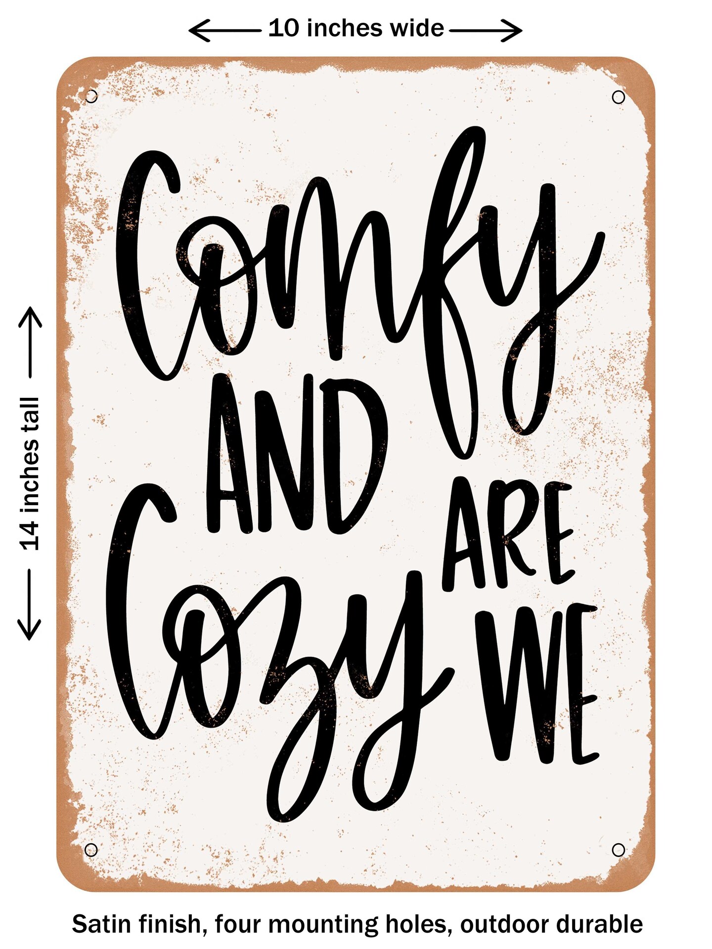 DECORATIVE METAL SIGN - Comfy and Cozy Are We - Vintage Rusty Look