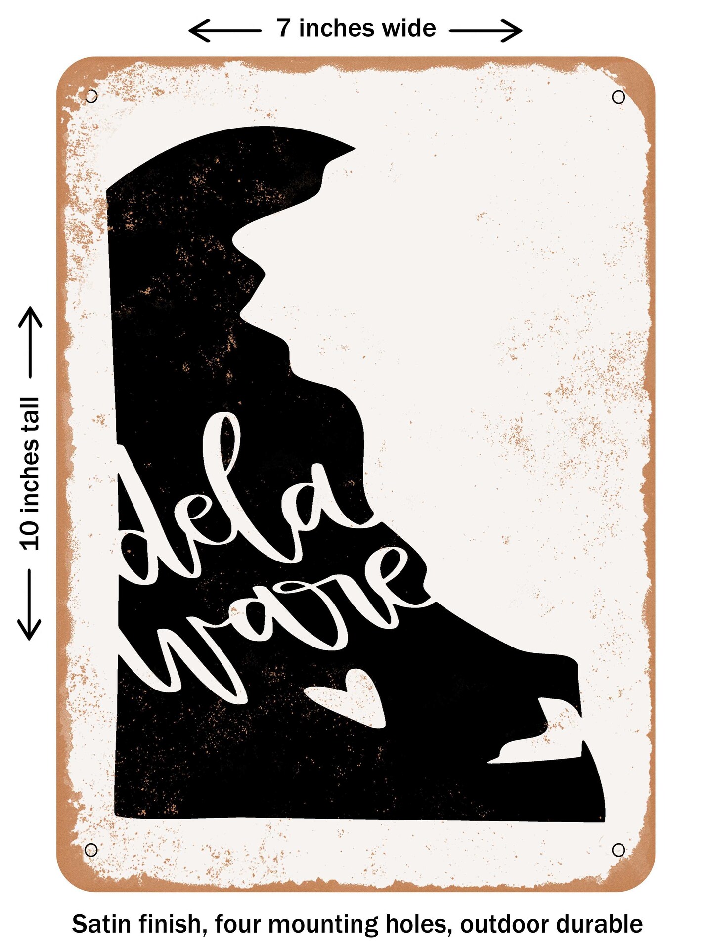 DECORATIVE METAL SIGN - Delaware Heart - Vintage Rusty Look