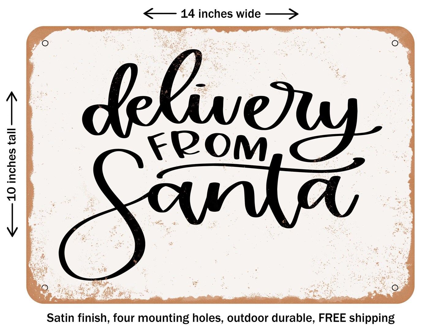 DECORATIVE METAL SIGN - Delivery From Santa - Vintage Rusty Look