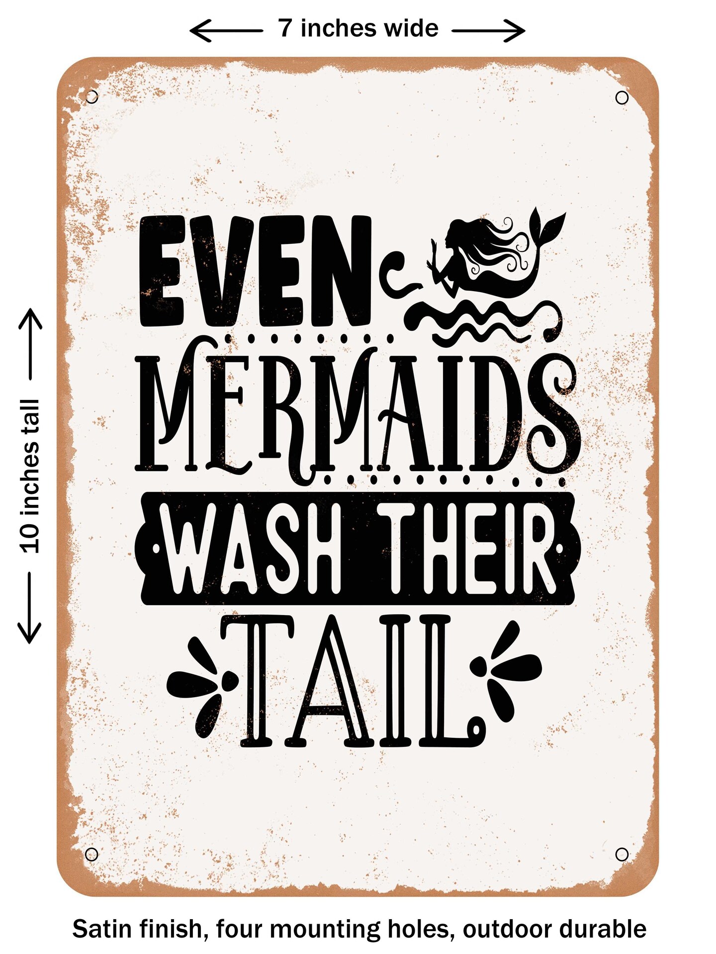 DECORATIVE METAL SIGN - Even Mermaids Wash their Tail - Vintage Rusty Look