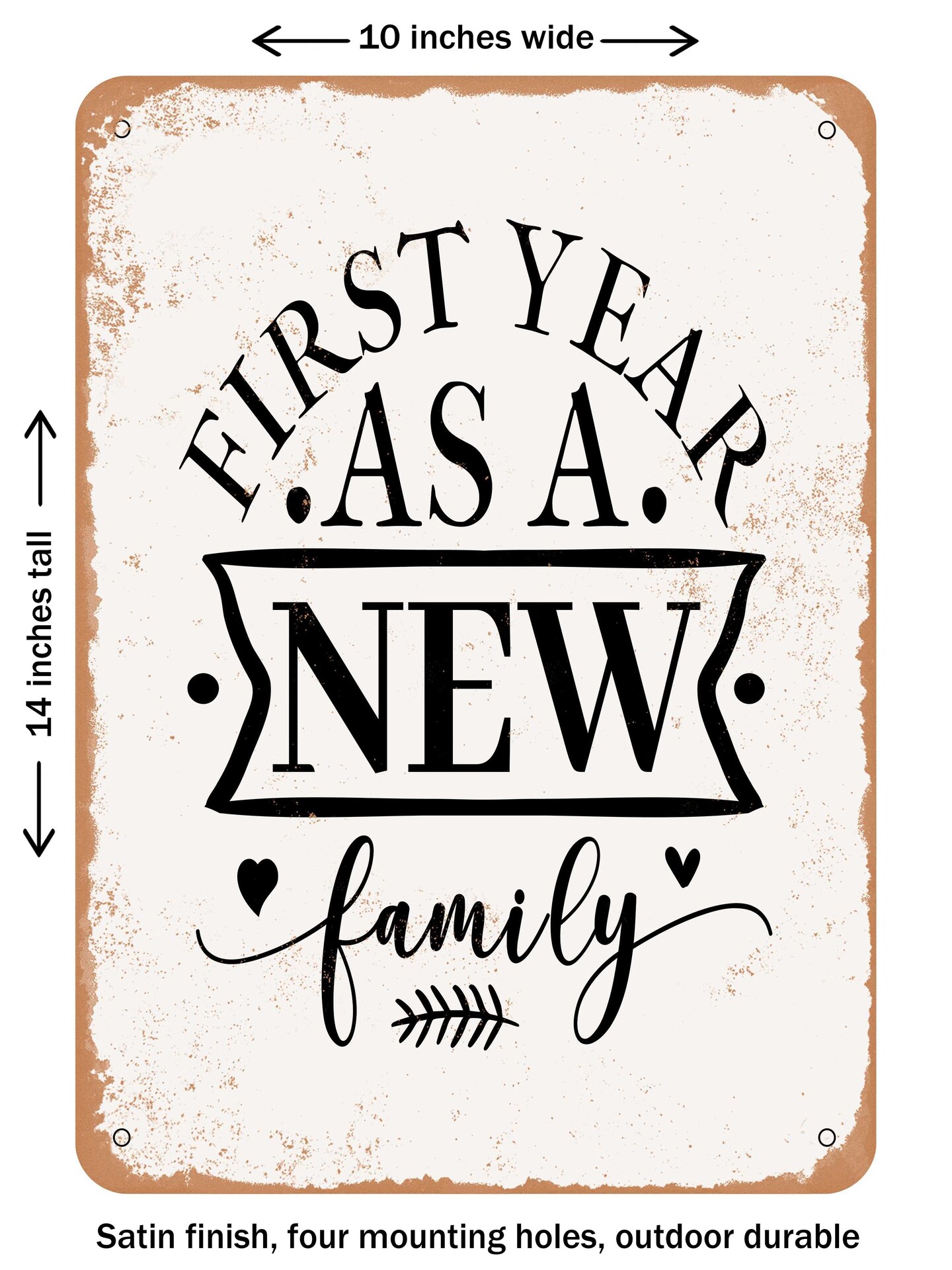 DECORATIVE METAL SIGN - First Year As a New Family - Vintage Rusty Look