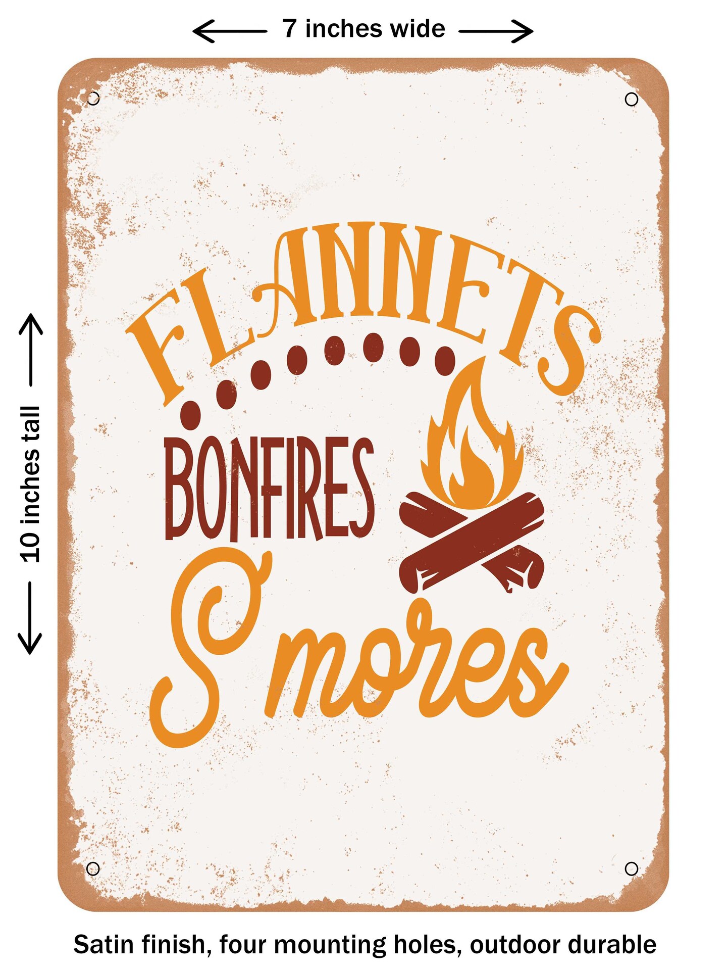 DECORATIVE METAL SIGN - Flannels Bonfires S'mores - Vintage Rusty Look