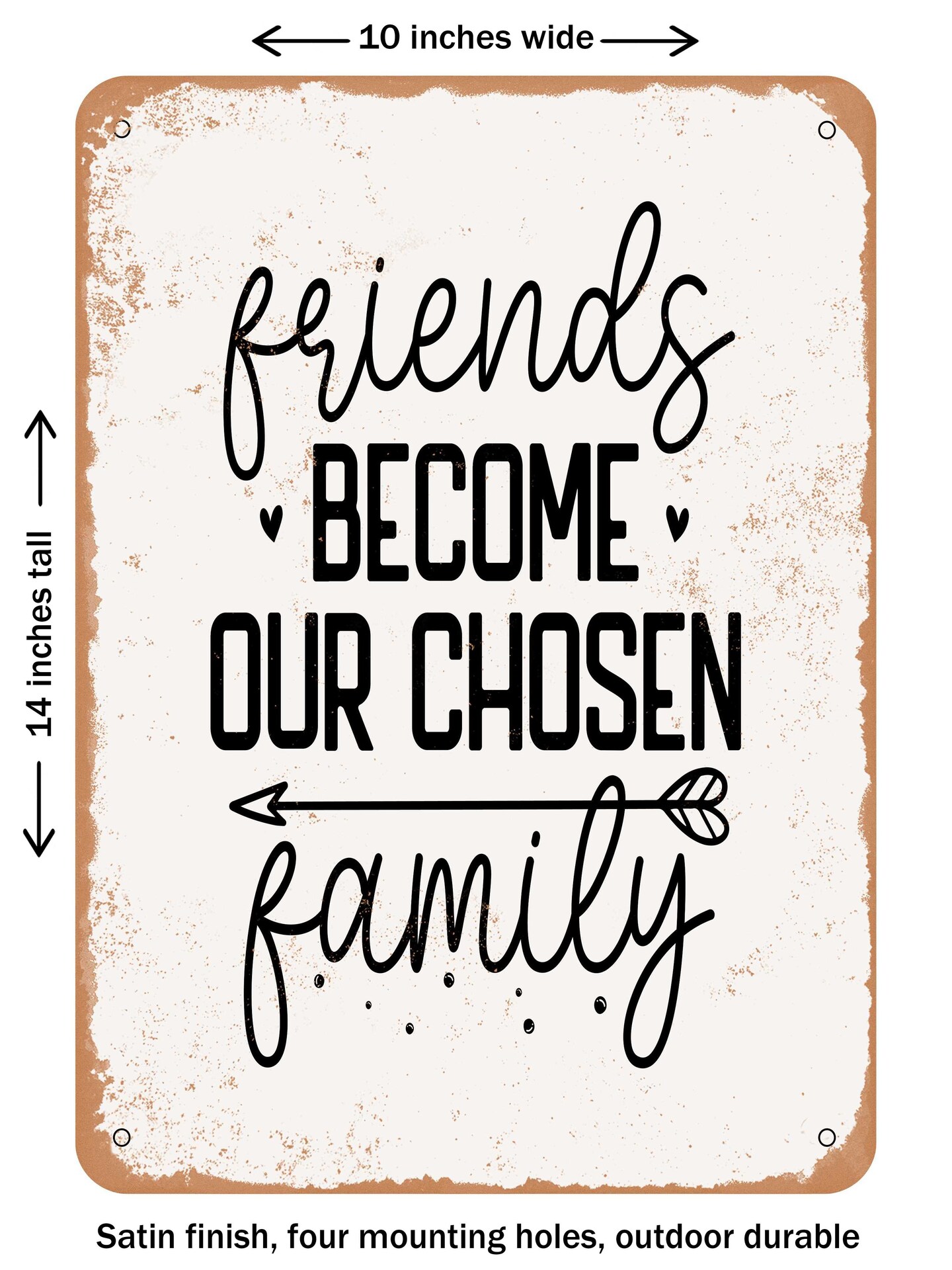 DECORATIVE METAL SIGN - Friends Become Our Chosen Family - Vintage Rusty Look