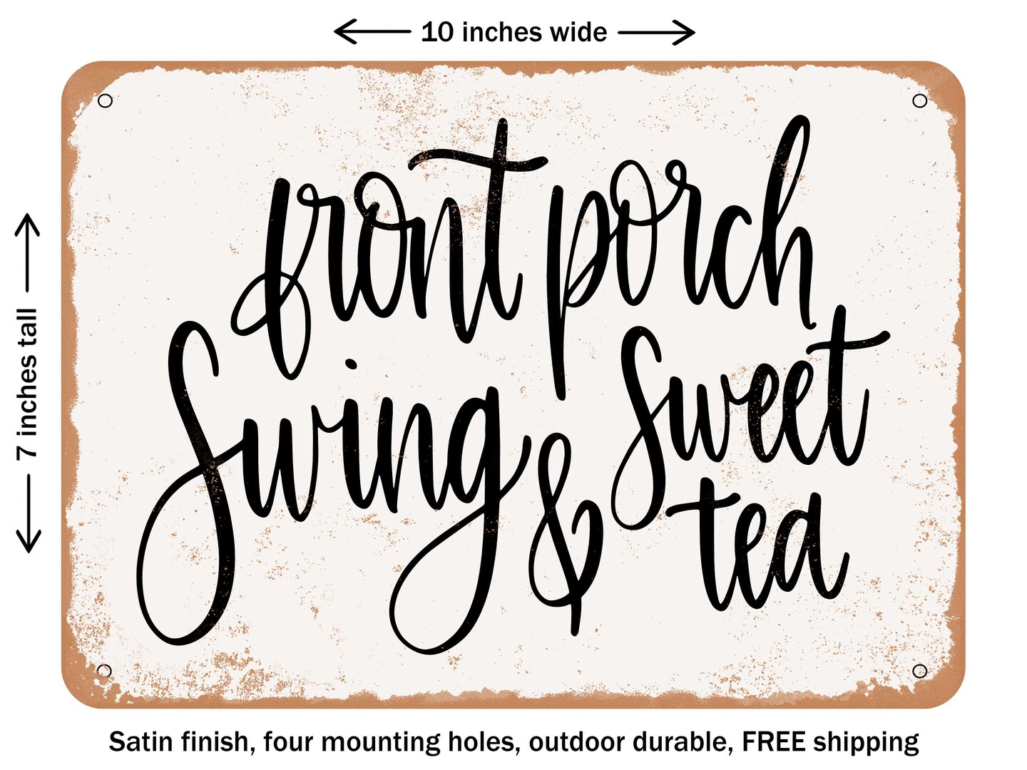 DECORATIVE METAL SIGN - Front Porch Swing Sweet Tea - Vintage Rusty Look