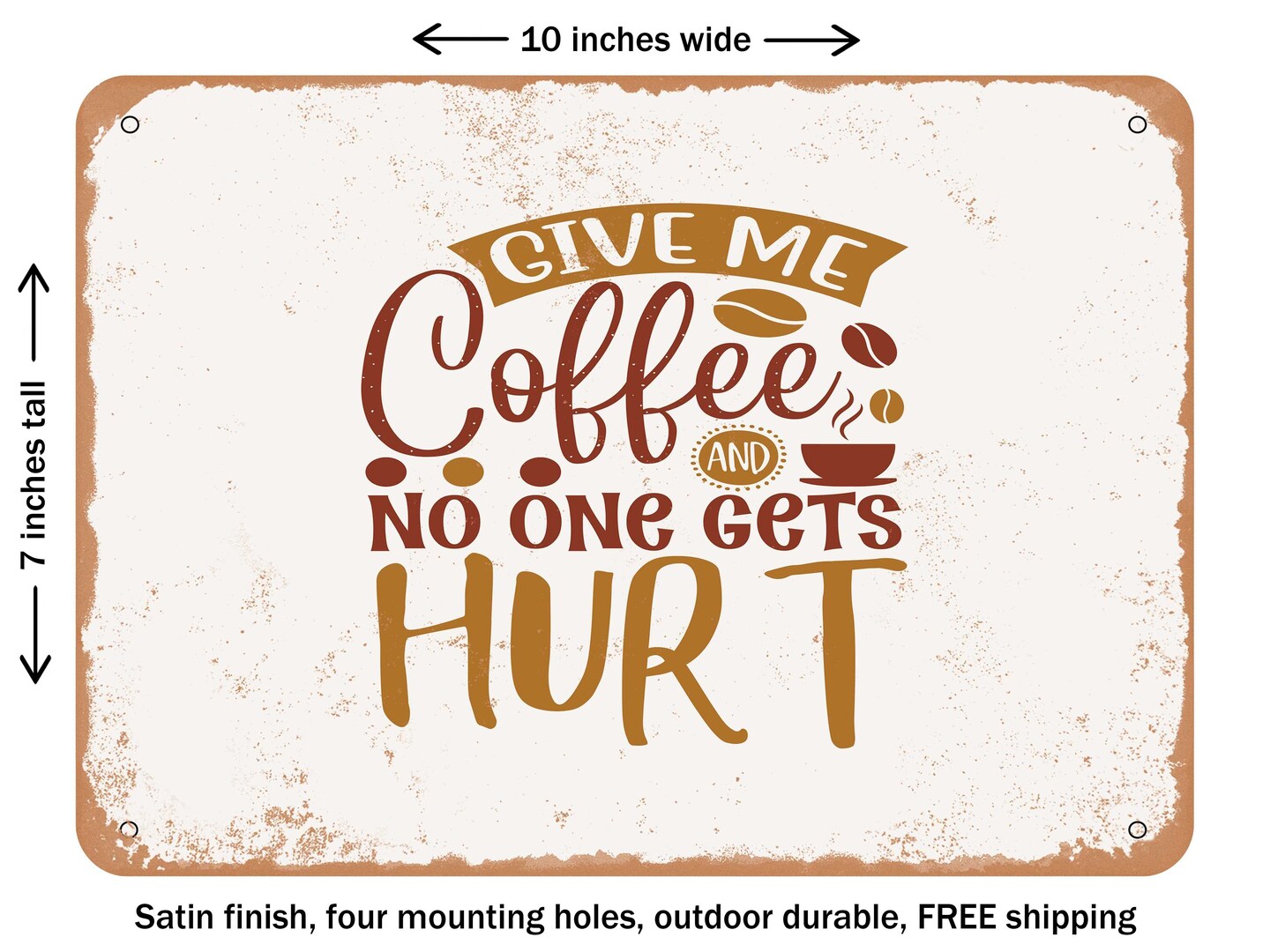 DECORATIVE METAL SIGN - Give Me Coffee and No One Gets Hurt - Vintage Rusty Look