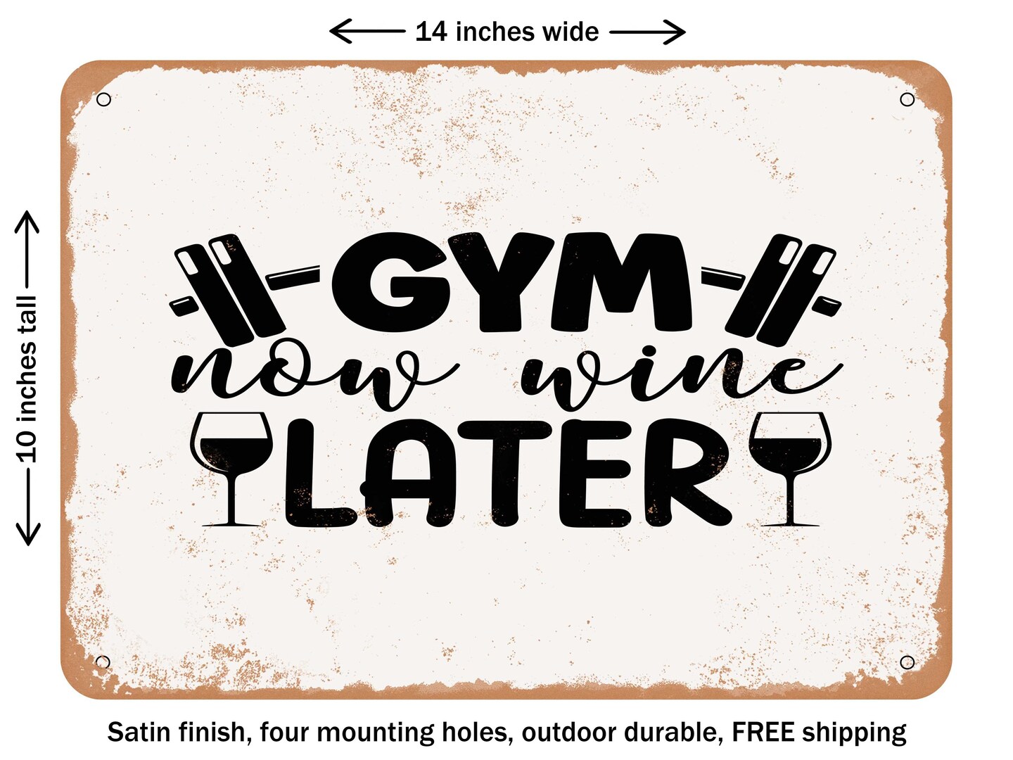 DECORATIVE METAL SIGN - Gym Now Wine Later - Vintage Rusty Look