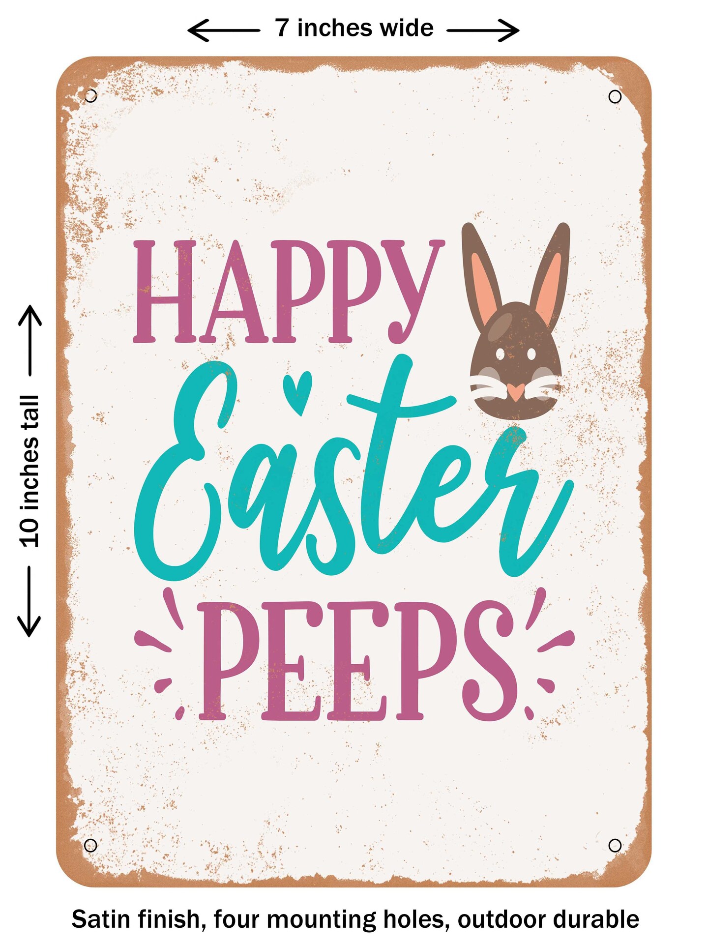 DECORATIVE METAL SIGN - Happy Easter Peeps - Vintage Rusty Look
