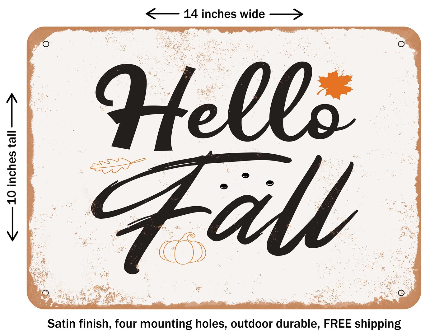 DECORATIVE METAL SIGN - Hello Fall0 - Vintage Rusty Look