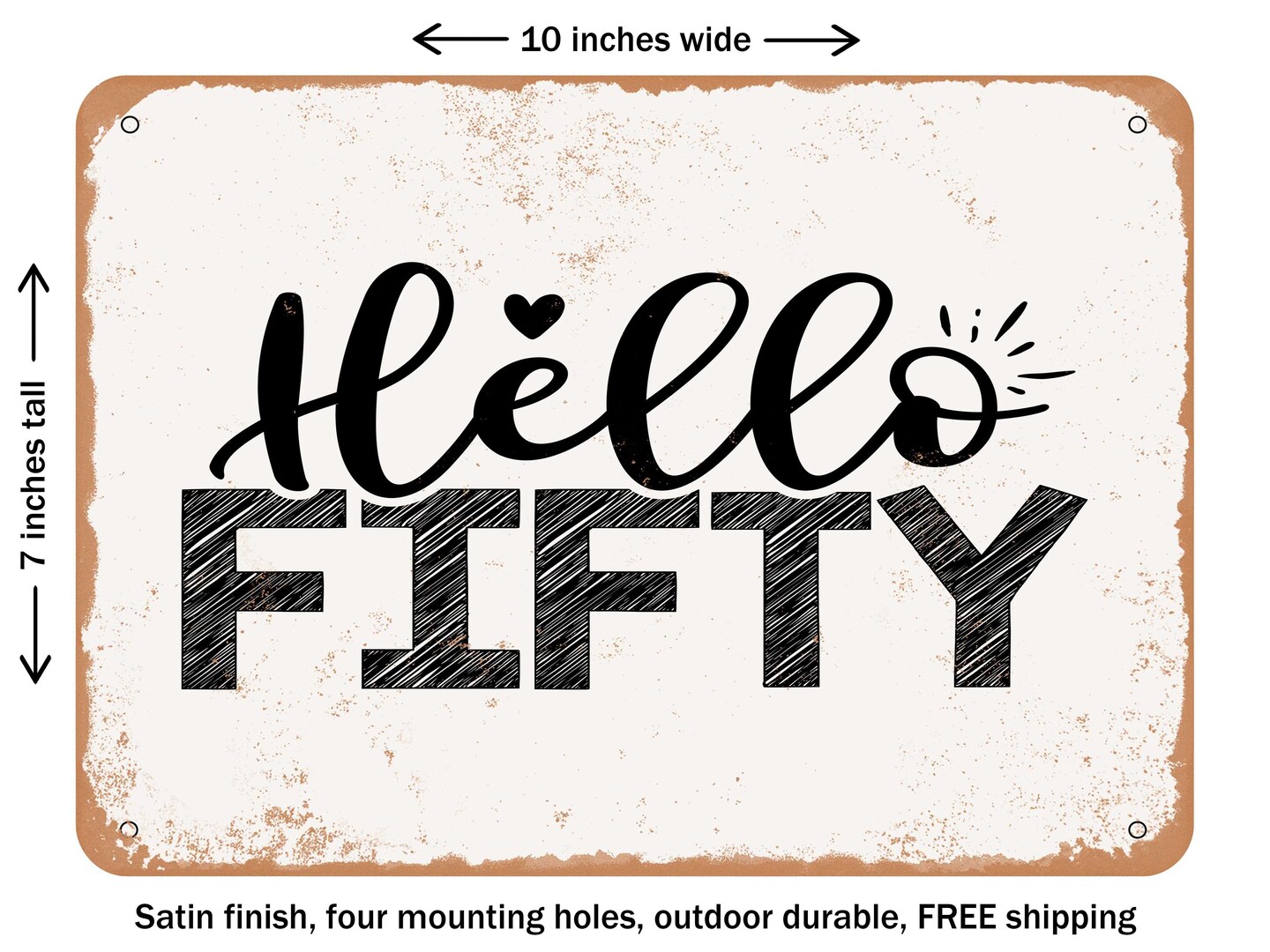 DECORATIVE METAL SIGN - Hello Fifty - 2 - Vintage Rusty Look