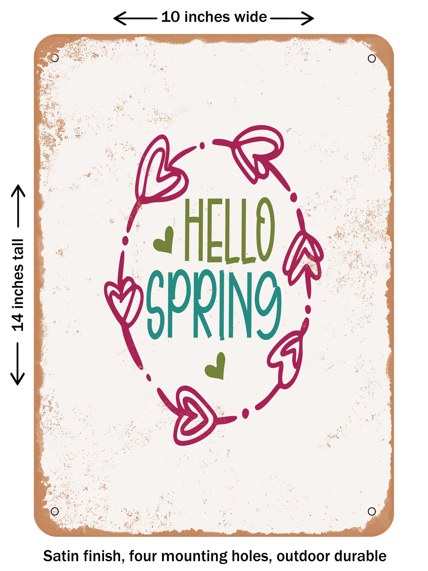 DECORATIVE METAL SIGN - Hello Spring - 5 - Vintage Rusty Look