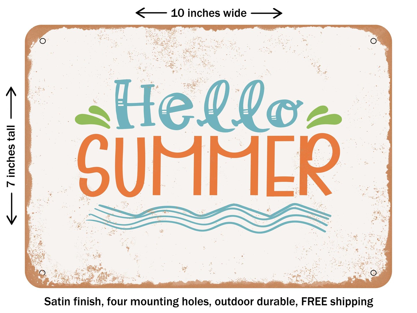 DECORATIVE METAL SIGN - Hello Summer - 4 - Vintage Rusty Look