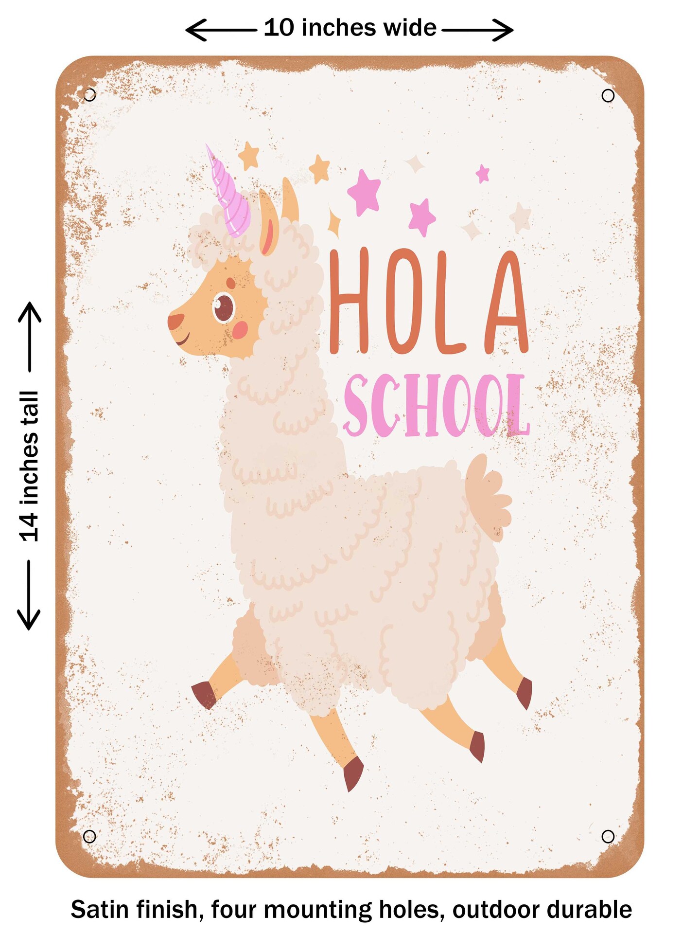 DECORATIVE METAL SIGN - Hola School  - Vintage Rusty Look