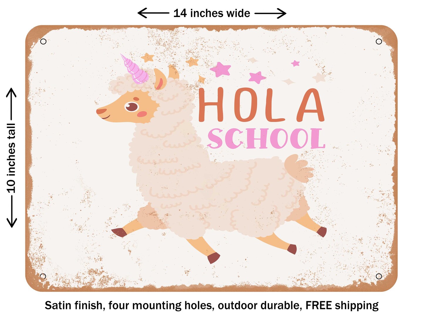 DECORATIVE METAL SIGN - Hola School - Vintage Rusty Look
