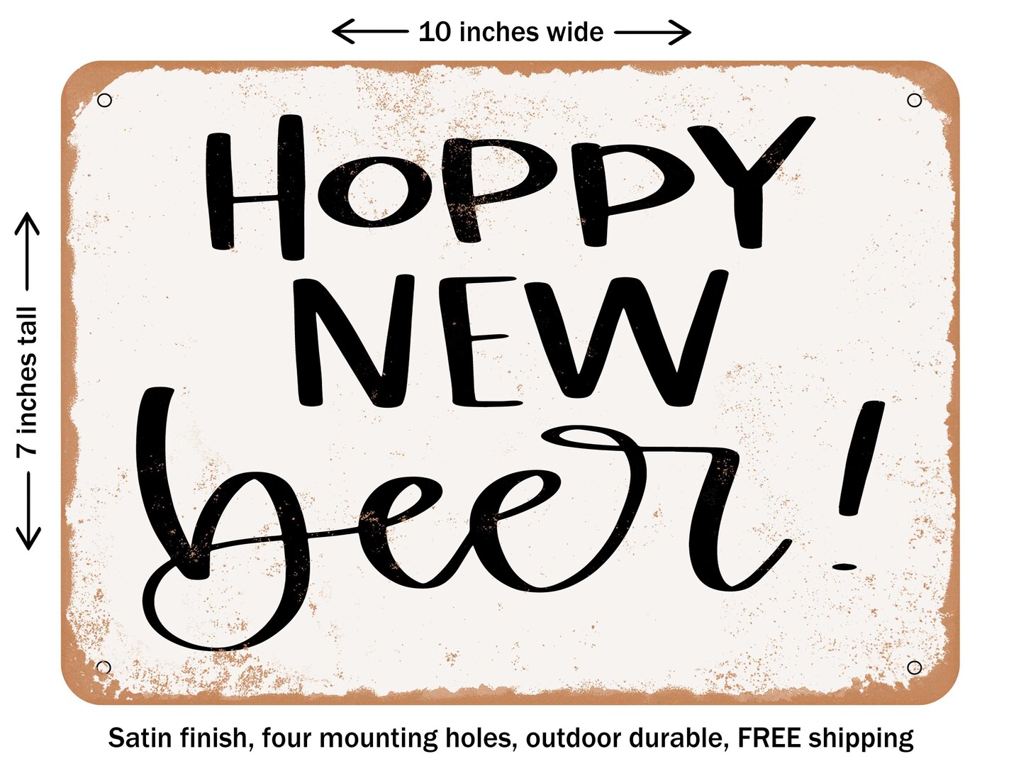 DECORATIVE METAL SIGN - Hoppy New Beer - Vintage Rusty Look