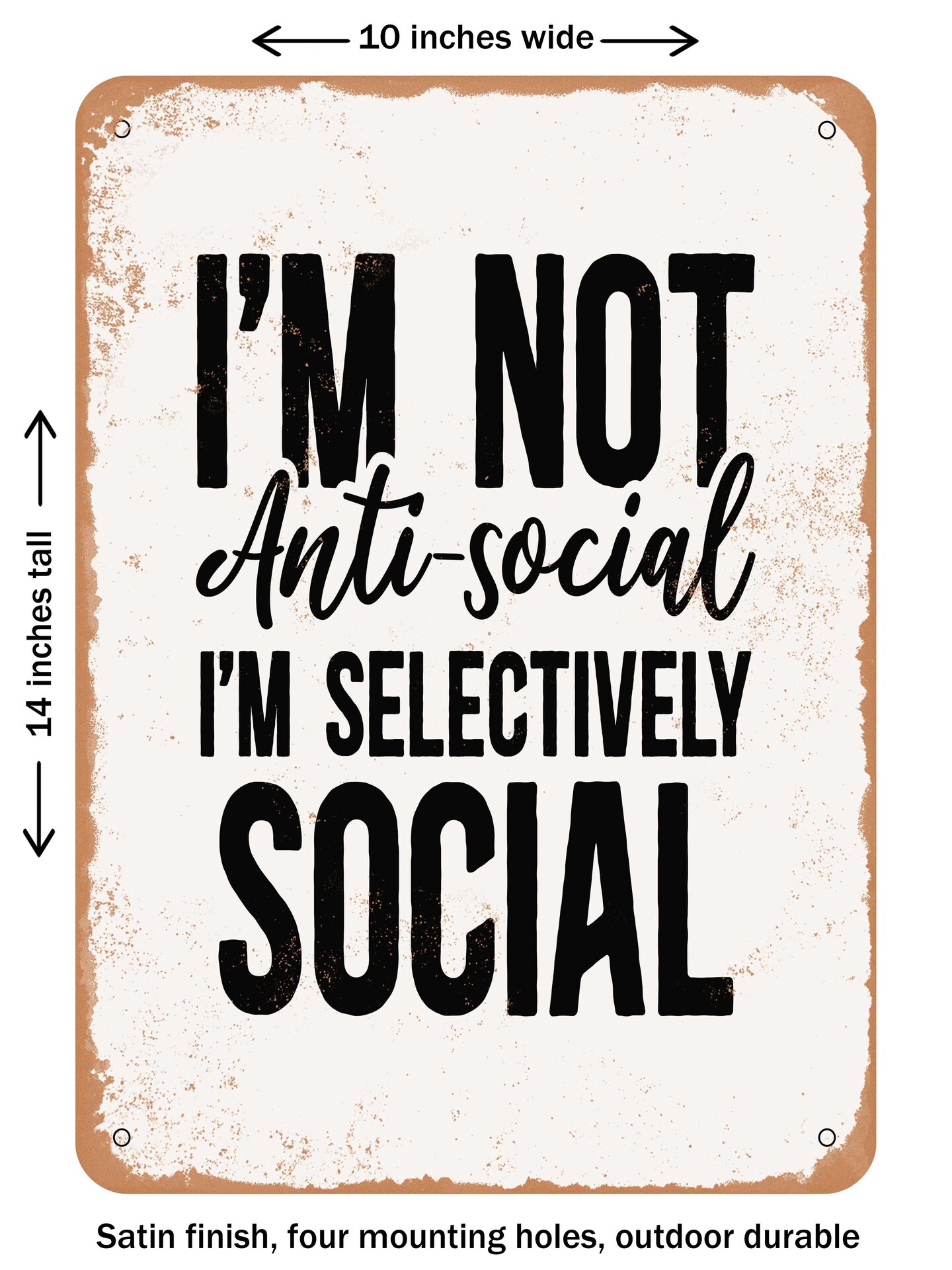 DECORATIVE METAL SIGN - I'm Not Anti Social I'm Selectively Social - Vintage Rusty Look