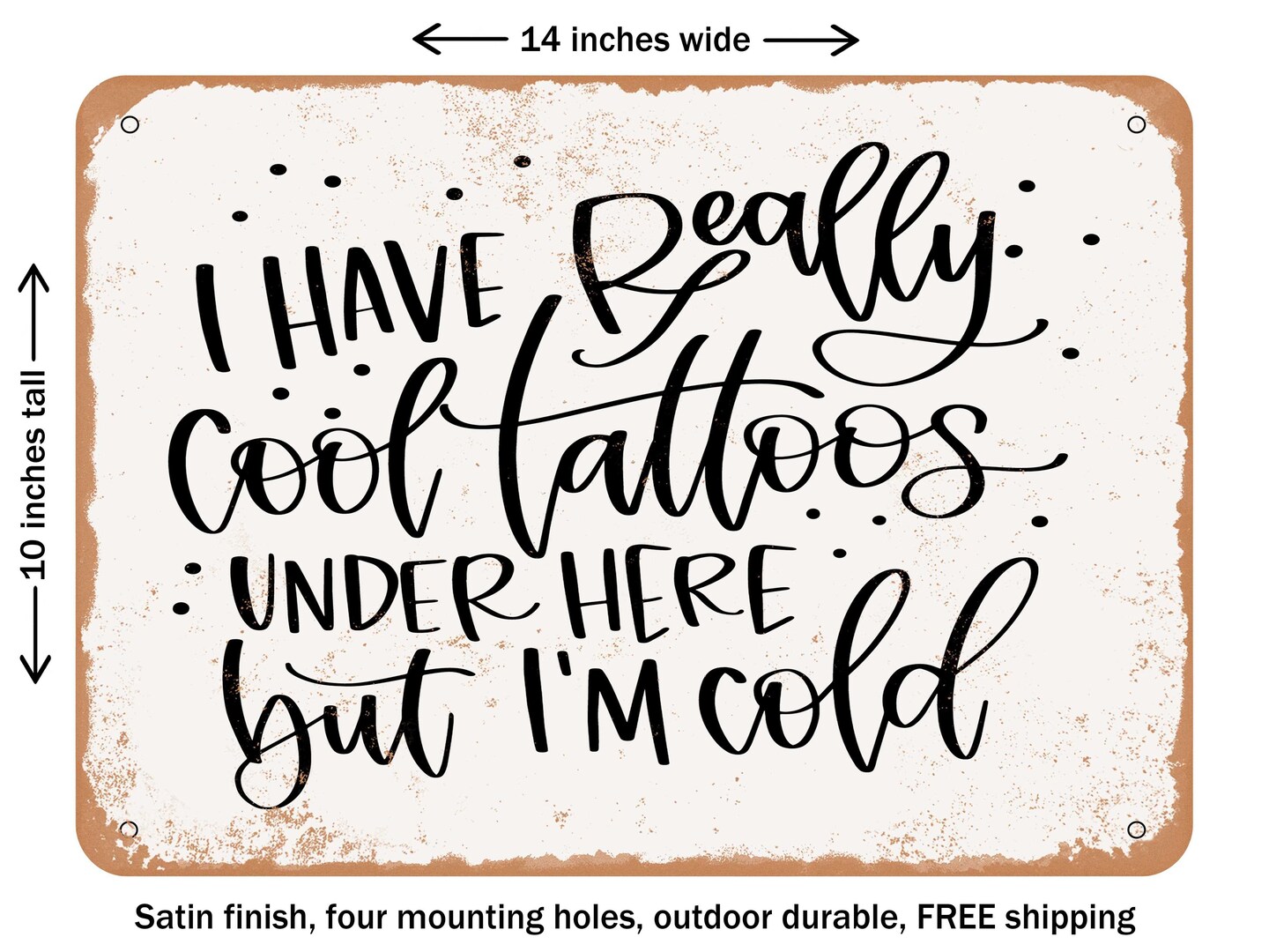 DECORATIVE METAL SIGN - I Have Really Cool Tattoos Under Here But I'm Cold - Vintage Rusty Look