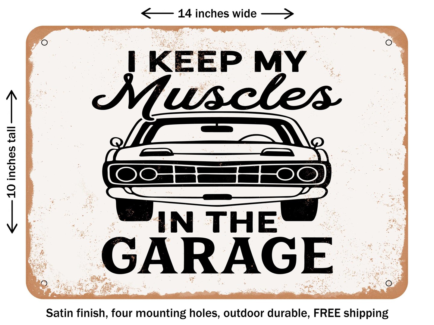 DECORATIVE METAL SIGN - I Keep My Muscles In the Garage - 2 - Vintage Rusty Look
