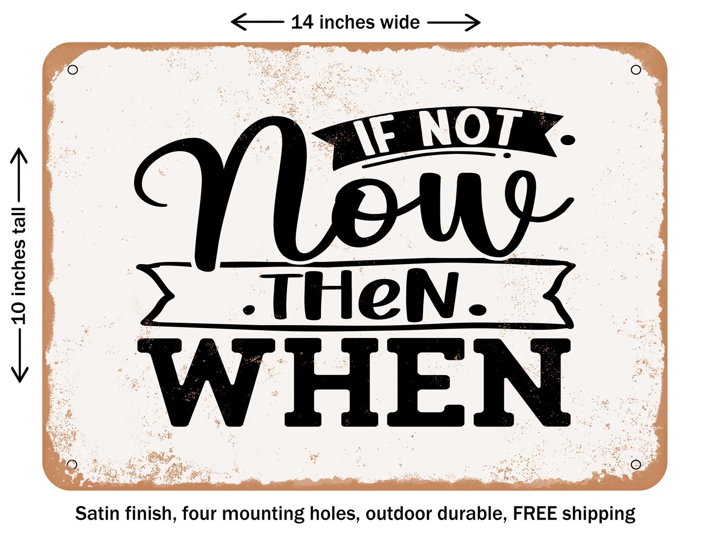 DECORATIVE METAL SIGN - If Not Now then When - Vintage Rusty Look