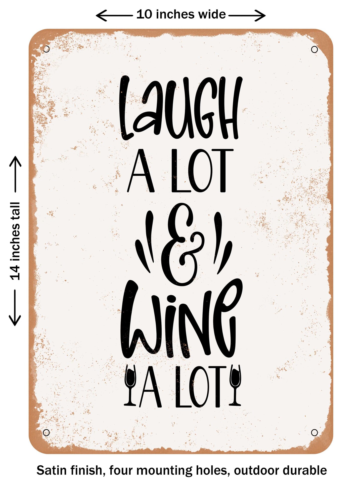 DECORATIVE METAL SIGN - Laugh a Lot and Wine a Lot - Vintage Rusty Look