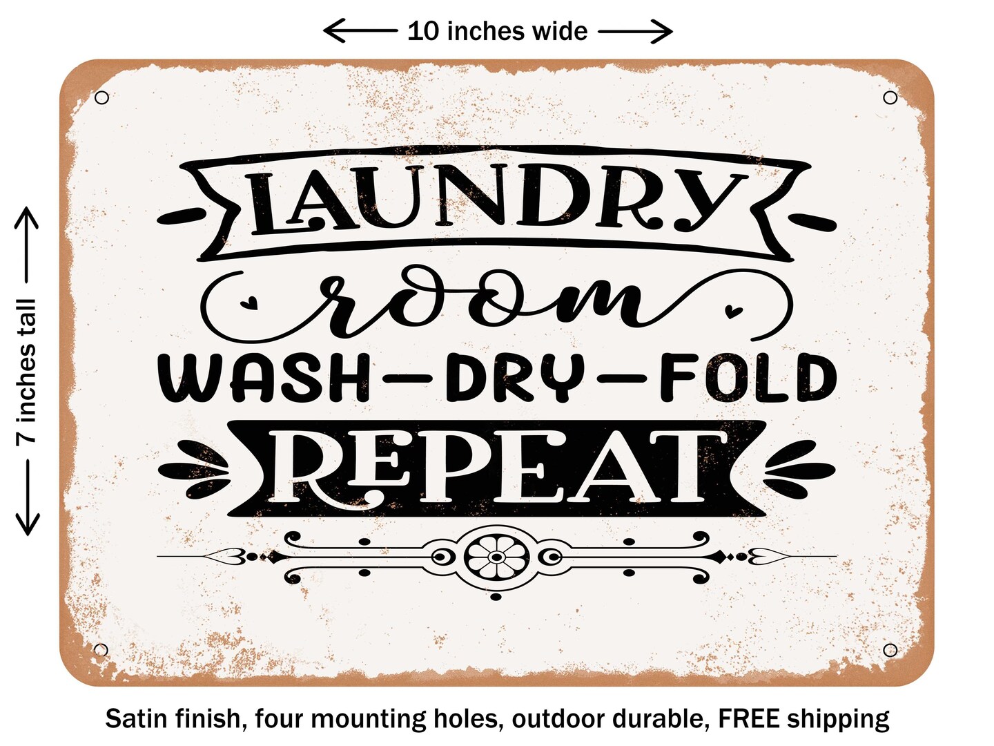 DECORATIVE METAL SIGN - Laundry Room Wash Dry Fold Repeat - Vintage Rusty Look