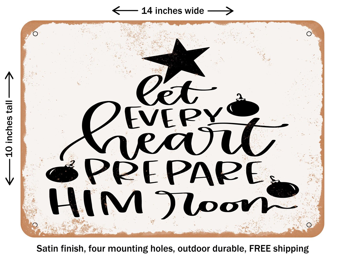 DECORATIVE METAL SIGN - Let Every Heart Prepare Him Room - Vintage Rusty Look