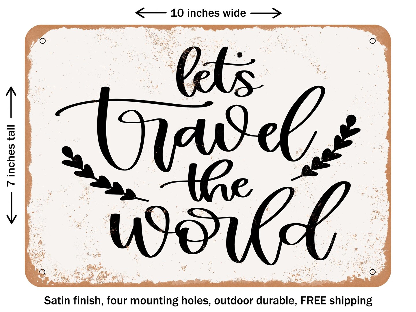 DECORATIVE METAL SIGN - Lets Travel the World - Vintage Rusty Look